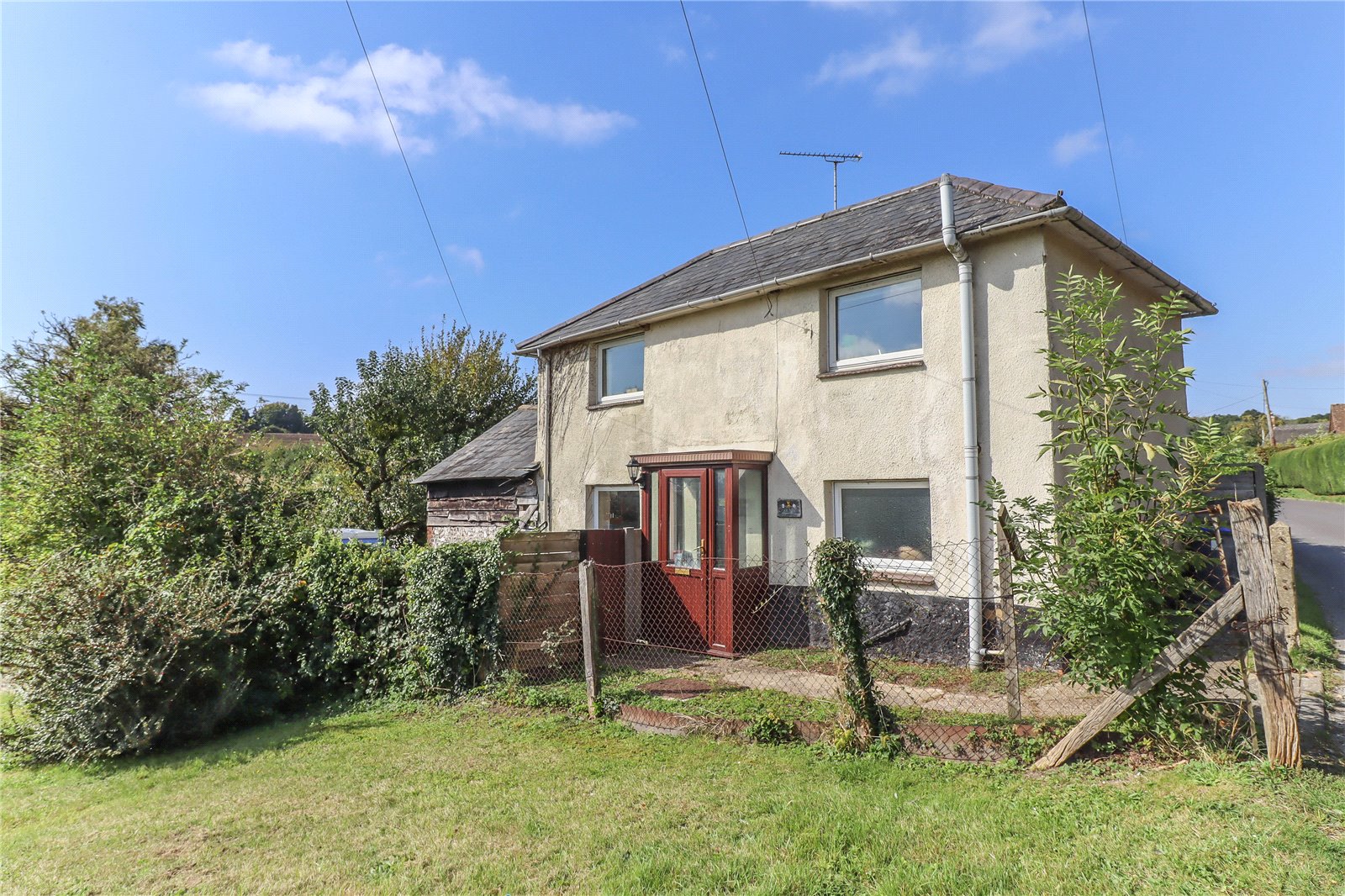 A detached cob cottage with a lower level brick and flint part weatherboard barn currently a workshop/games room with former hayloft/storage above. The property is in a dated condition but has great scope for modernisation. Alternatively full planning permission has recently been granted (Wiltshire planning PL/2023/10723) to demolish the existing property, replacing it with a new cottage style house that has spacious ground floor accommodation; consisting of a comprehensive reception hall with cloakroom, dual aspect living room, spacious open plan kitchen/dining area, separate study and generously proportioned utility/boot room. On the first floor there would be a principal bedroom, two further bedrooms and a bathroom.
