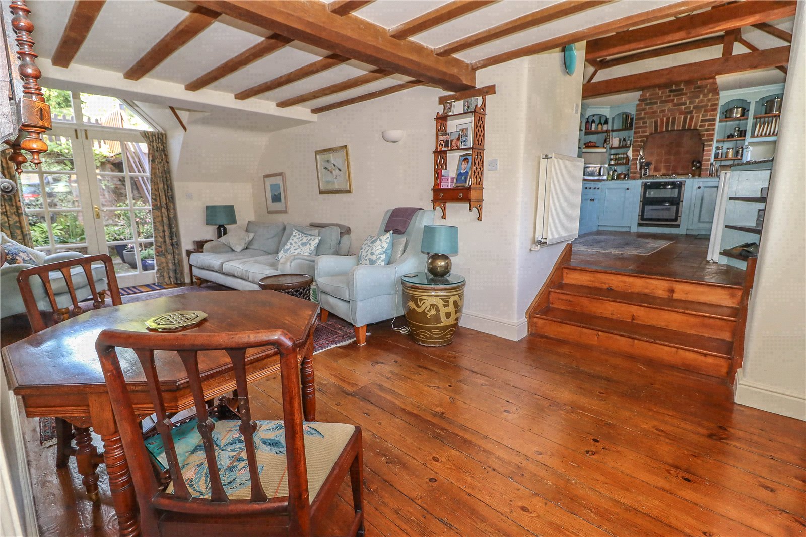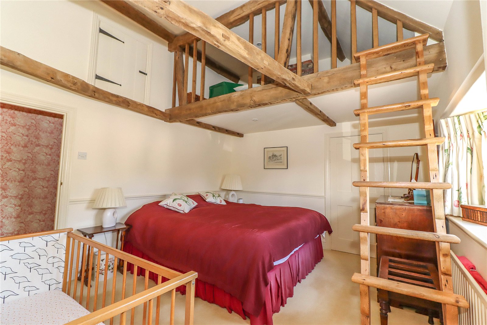 A handsome detached period house with classic features, this property, though not Listed, benefits from mainly double-glazed windows and good insulation. The attractive brick elevations, stone and chalk block decorative bands, and clay-tiled roof provide timeless character, complemented by well presented and versatile accommodation ideal for families or couples who enjoy entertaining. The ground floor comprises three reception rooms, with the least formal linking to a beautifully appointed bespoke kitchen, with practical additions including a larder, laundry, boot room and integral double garage. On the first floor, there are four generously proportioned bedrooms, with the principal featuring a well-appointed en-suite and direct access to the garden, while two others include interesting mezzanine areas perfect for older children, and a family bathroom completes the accommodation. The large garden wraps around the rear of the property, with raised lawns enjoying views, mature trees and a secluded summerhouse, creating a peaceful and private outdoor space.
