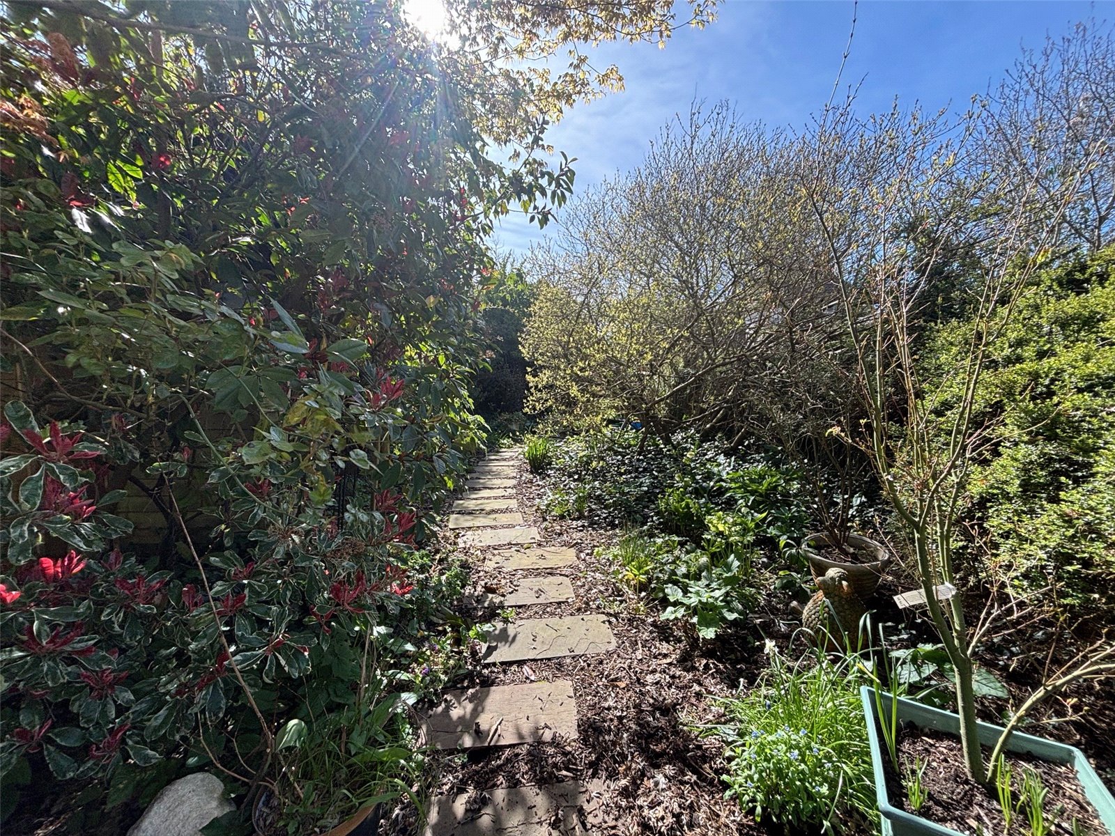 Long, private rear garden (approx. 240 ft) with southerly aspect