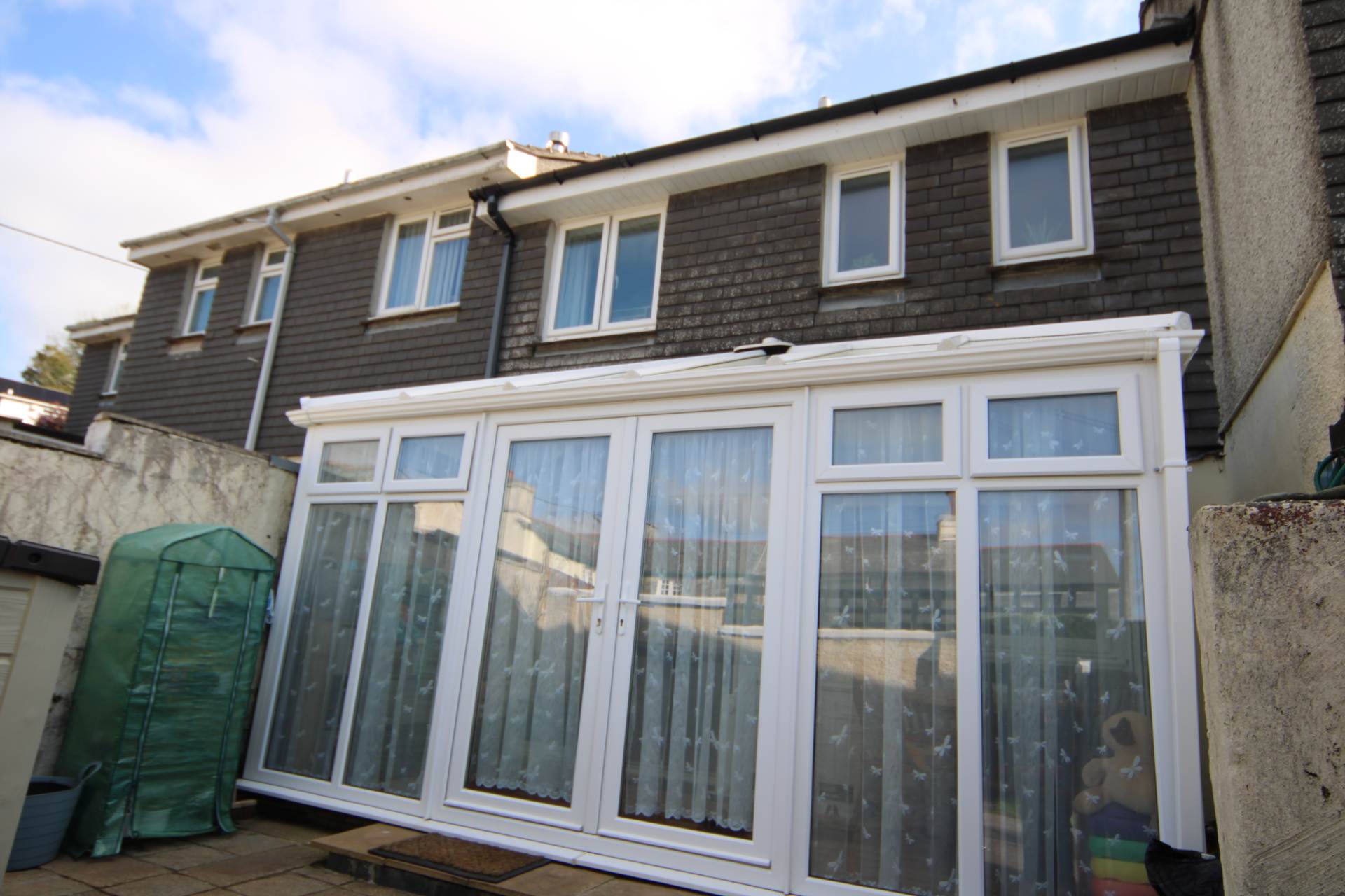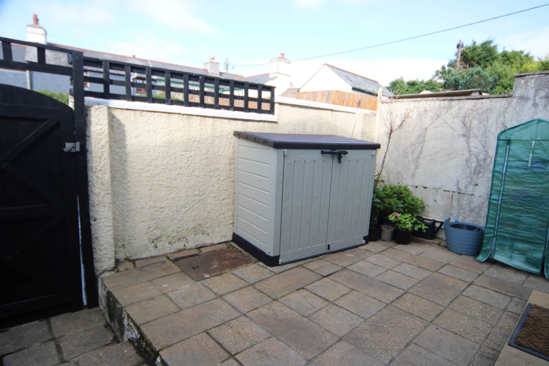To the rear there is a low maintenance paved patio garden which is enclosed with walling with a garden shed and a rear access gate. Just opposite the property and nearby is residents parking.