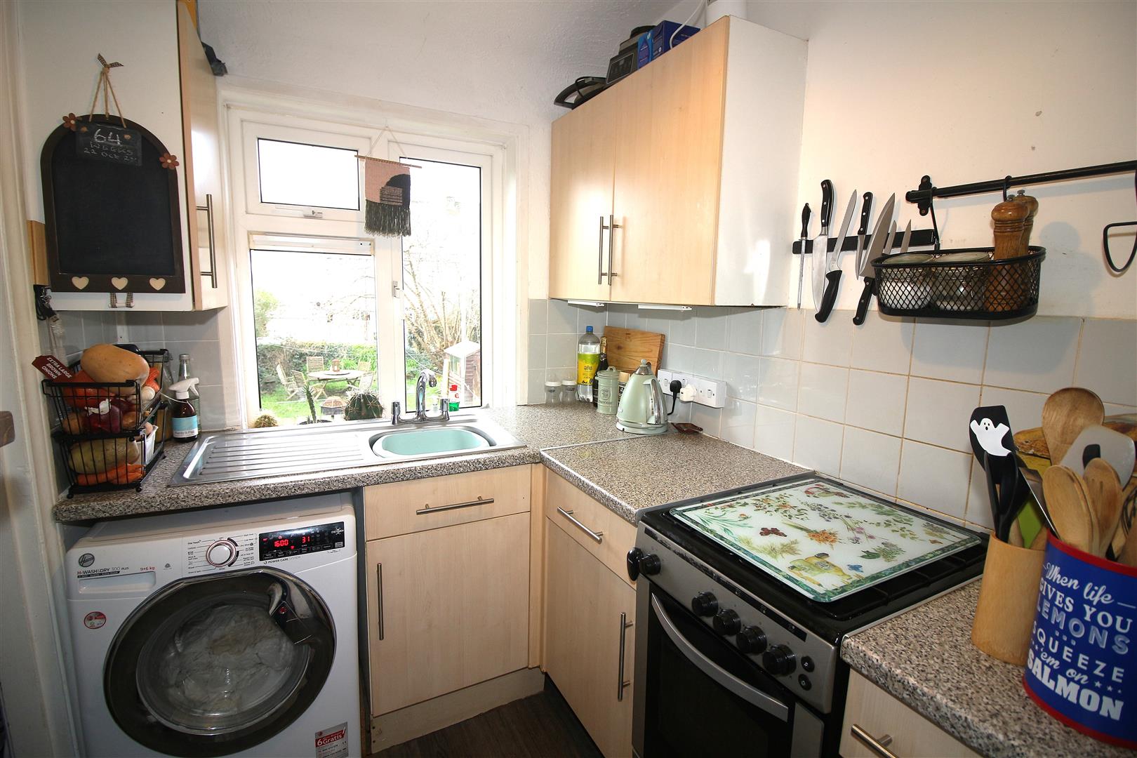 Kitchen - 2.51m x 1.78m (8'3 x 5'10) - Range of matching kitchen units comprising wall mounted and base units with worksurfaces above, single drainer sink unit with mixer tap, tiled splashbacks, space and plumbing for washing machine, radiator, various power points, space for cooker, walk in pantry with shelving, space for fridge/freezer, double glazed window to the rear aspect.