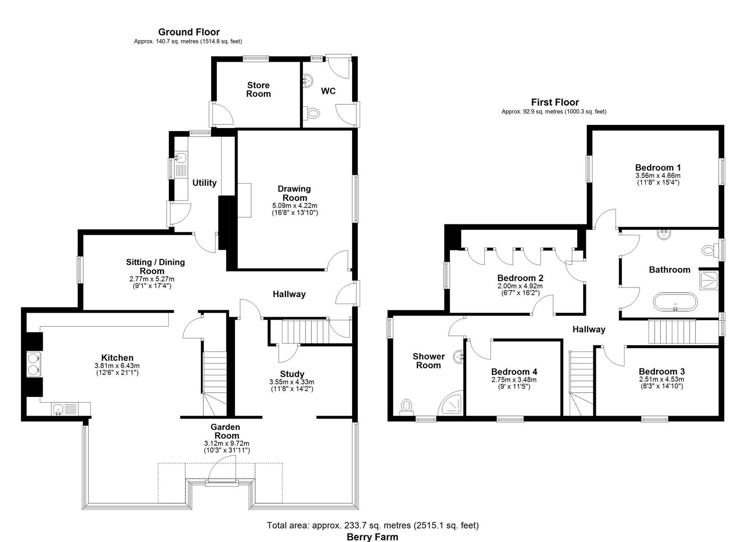 General Purpose Store: - 11.30m x 5.35m (37'0" x 17'6" ) - Single storey with potential for stabling with small turnout yard to the side