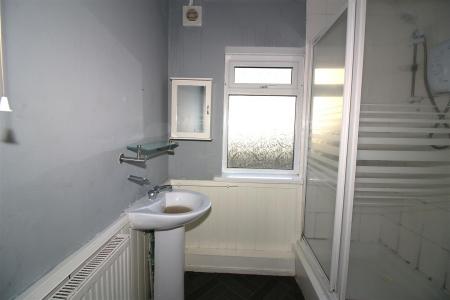 Shower Room - 1.96m x 1.93m - uPVC DG window to rear aspect, white suite comprising shower cubicle with electric shower, pedestal wash hand basin, low level WC, tiled splash backs, wall mounted extractor fan, wall mounted electric fan heater, combi boiler, radiator, fitted carpet.