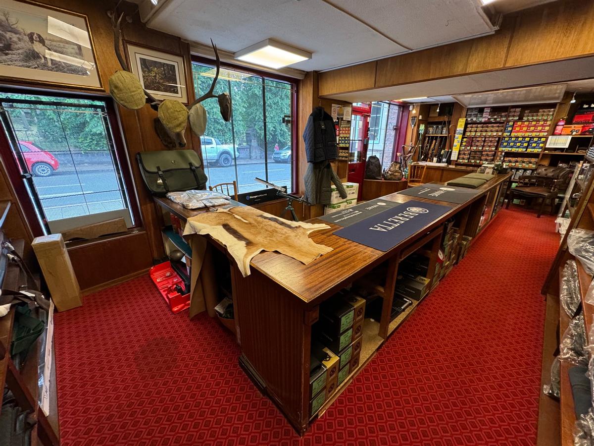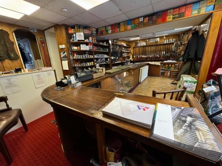 Mixed use retail unit with 6 ground floor rooms, kitchen and 5 additional rooms to the rear, enclosed garden, 5 garages and tarmacadam parking area. Further lawned area. First floor apartment with 3 bedrooms, bathroom and balcony. Possible development opportunity subject to appropriate planning consent.