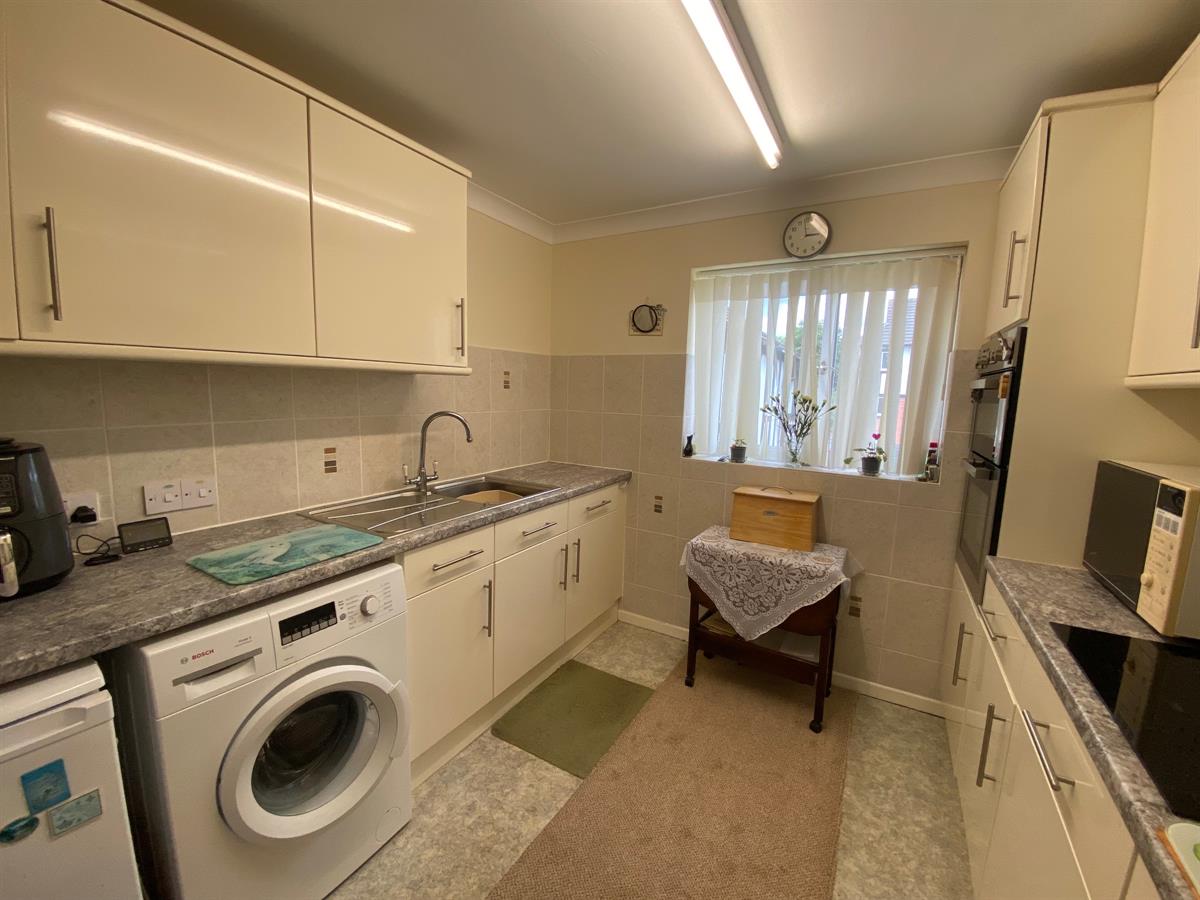Fitted with a range of soft close, wall, base and drawer units having granite effect work surface over incorporating a single bowl stainless steel sink and drainer with mixer tap over, integrated double electric oven, hob with extractor over, space for fridge/freezer, space and plumbing for washing machine, space for undercounter fridge, part tiled walls, laminate flooring, uPvc double glazed window to front elevation. Wired smoke alarm.