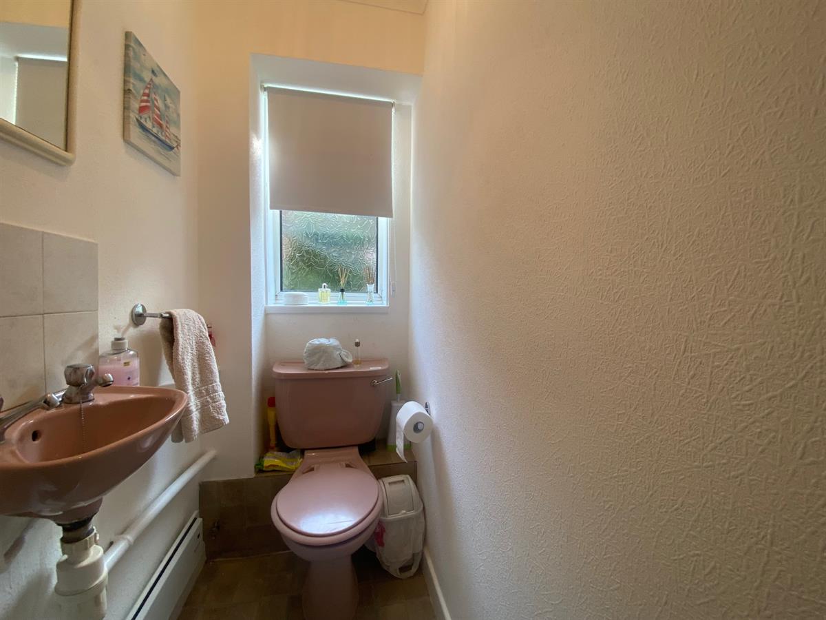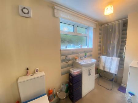 Two piece suite comprising of a low level WC, wall mounted wash hand basin with complimentary splash back tiling, uPvc double glazed frosted panelled window to the rear elevation.