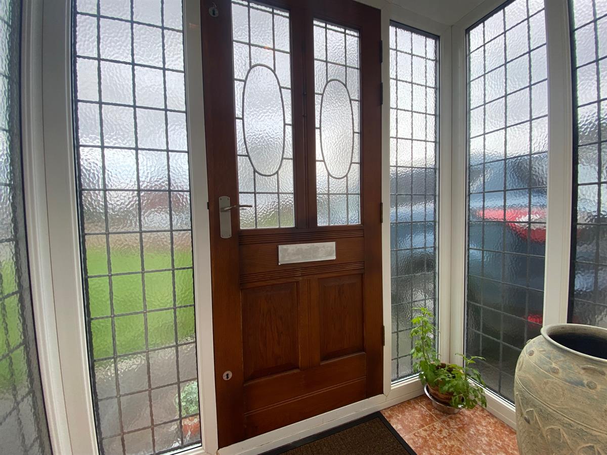 Approached over a Tarmacadam driveway leading to the decorative double glazed panelled oak entrance door giving access in to the reception porch.