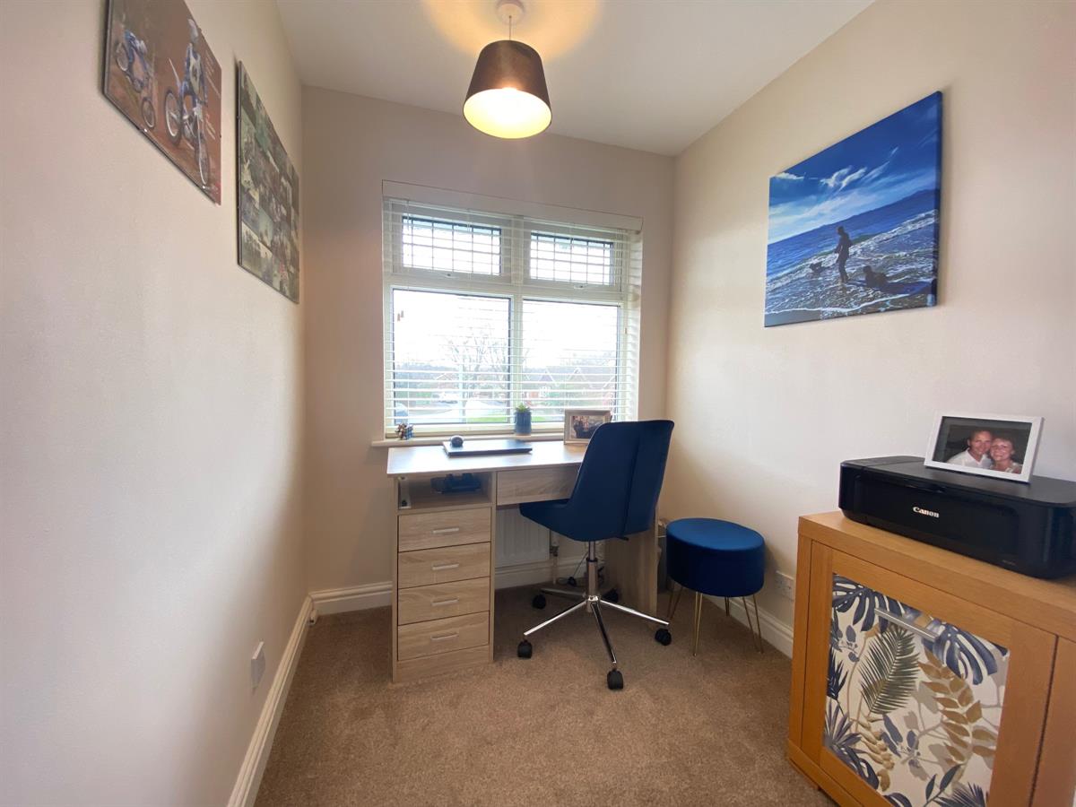 To the rear of the property there is an enclosed garden with fencing to all boundaries, laid to artificial lawn with a stone paved patio area allowing ample space for garden furniture, outside lighting, outside tap, access gate to the side of the property leading to the drive and garage.