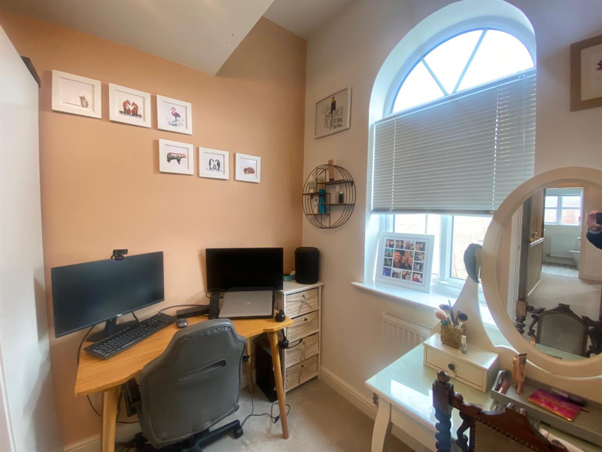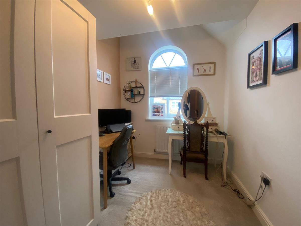 A spacious third bedroom with uPvc double glazed panelled feature arched window to the front elevation, double panelled radiator.