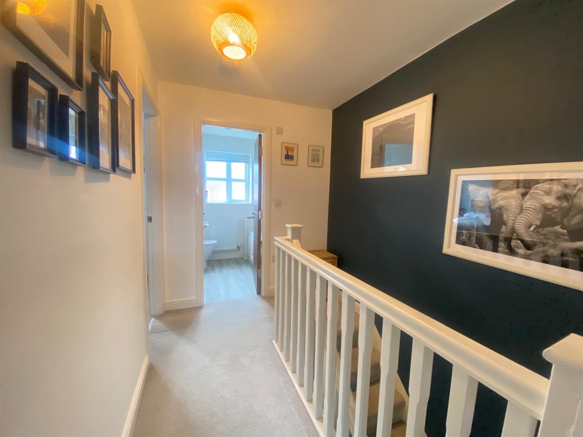 Spacious galleried landing with loft access point with drop down ladder leading to the partially boarded loft, built in storage cupboard.