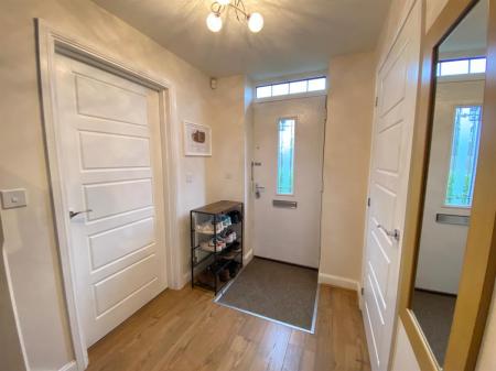 Approached over a Tarmacadam driveway leading to the double glazed panelled composite entrance door giving access into the reception hall.