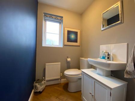 Ground floor cloakroom having a double glazed frosted panelled window to the front elevation, single panelled radiator, Fitted with a two piece suite comprising of a push button low level WC, pedestal wash hand basin with mixer tap and complimentary splash back tiling, oak effect flooring continued through from the reception hall.