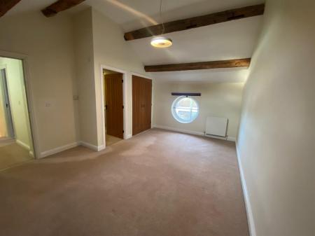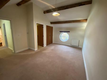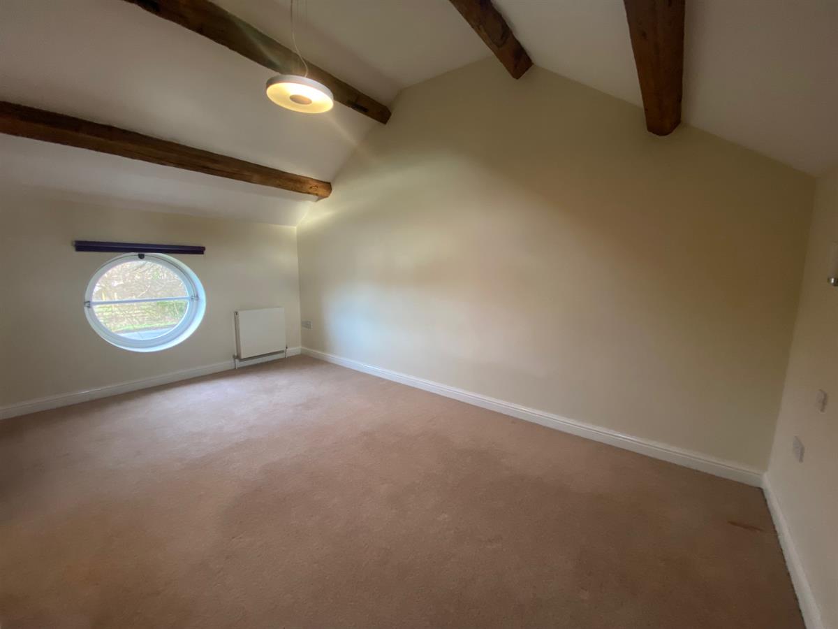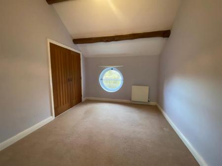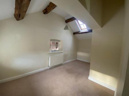 Double room with beamed ceiling dual aspect with wooden windows to rear and side elevation. Velux style window to ceiling.Flat panelled radiator.