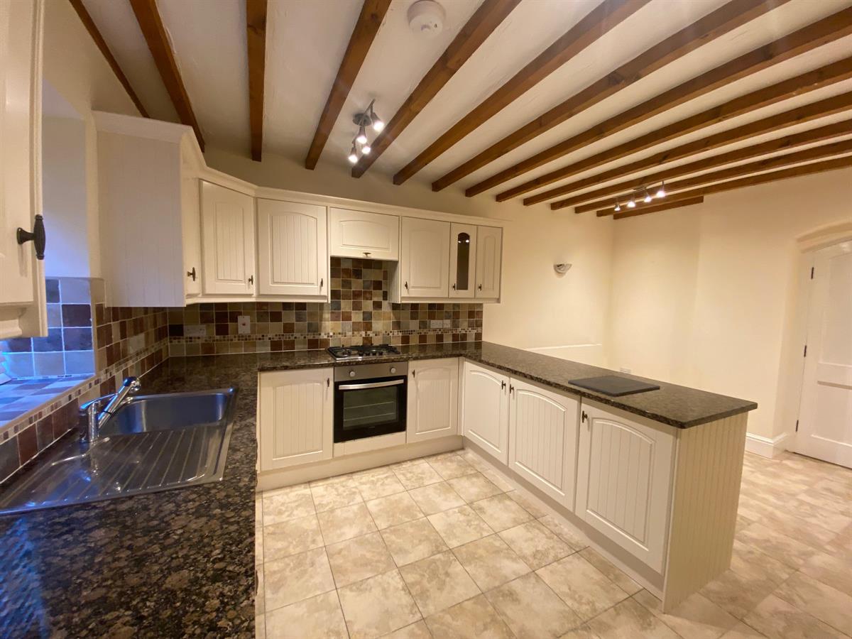 Spacious dining kitchen fitted with a range of Shaker style, wall base and drawer units with granite effect work surfaces over incorporating a single bowl stainless steel sink and drainer with mixer tap. Wooden window to front elevation. Complimentary splash back tiling. Integrated dishwasher, integrated washing machine, integrated under counter fridge and freezer, integrated electric fan oven with 4 ring gas burner hob and extractor over. Ceramic tiled floor, modern flat panelled radiators ample room for dining table and chairs.