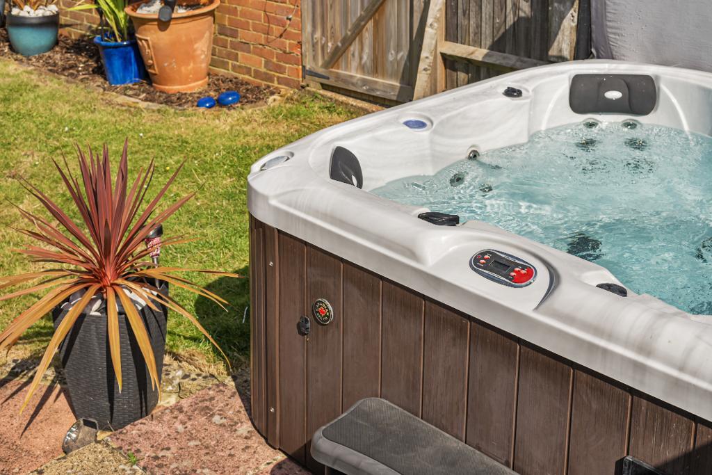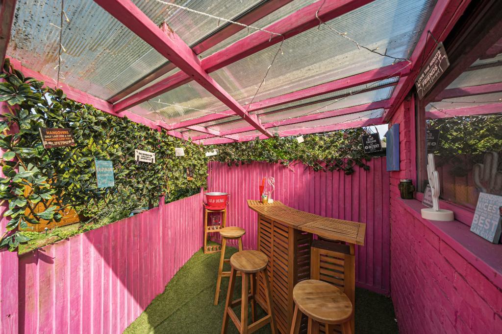 The garden is the perfect place to entertain in the summer with a covered patio, and space for sun loungers