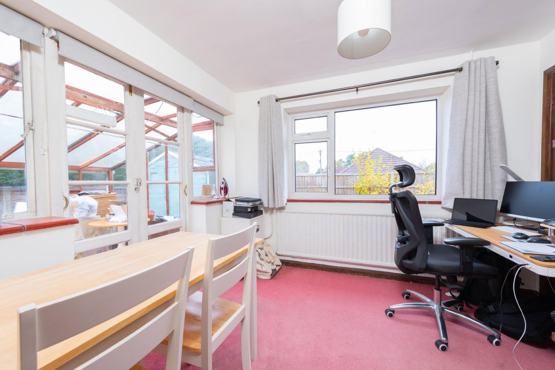 A detached two bedroom bungalow which offers the incoming purchaser the chance to extend and refurbish subject to the usual planning consents and regulations. The property benefits from a good Living room and a kitchen as well as a Leanto/conservatory and a shower room. There is also an adjoining garage which can easily be potentially converted. Most of the garden is to the left side of the property although there is a strip of garden to the rear. There is also some garden to the other side. The property is conveniently located in Owlsmoor close to local shops and amenities as well as good local schools and pleasant countryside close by.
