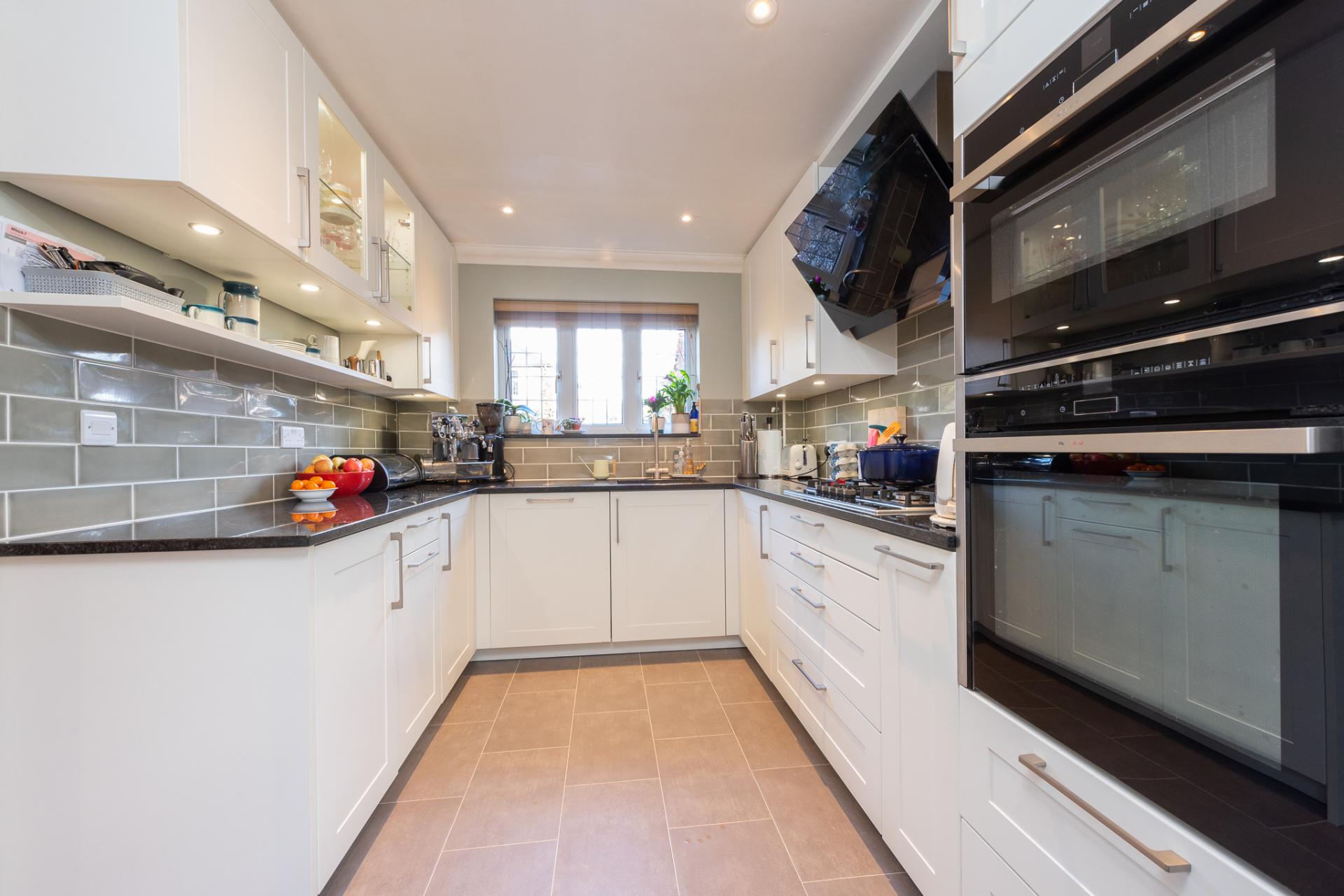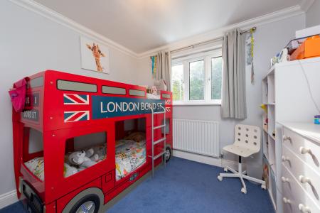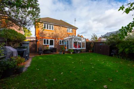 Offered to the market with no onward chain this attractive detached family home is tucked away within a gated setting and giving a private and secluded rear garden which backs onto woods. Downstairs space benefits from an open plan kitchen/dining room as well as a Living room which leads onto a conservatory giving access to the garden. There is also a useful utility room and a downstairs cloakroom. Upstairs benefits from four double bedrooms with a en-suite shower room to the main bedroom and a family bathroom.The house also benefits from an attached single garage as well as driveway parking for three cars.