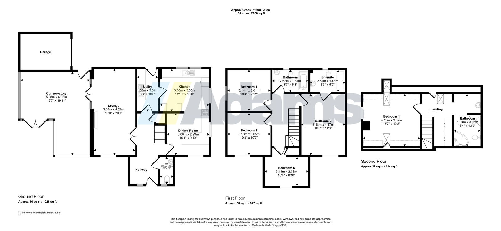 The ground floor features three generous reception rooms, providing ample space for entertaining, relaxing, or home working. At the heart of the home is a sleek, modern kitchen, complemented by a practical utility room. A bright and airy conservatory opens out to the garden, while a convenient downstairs W/C adds to the property’s functionality.