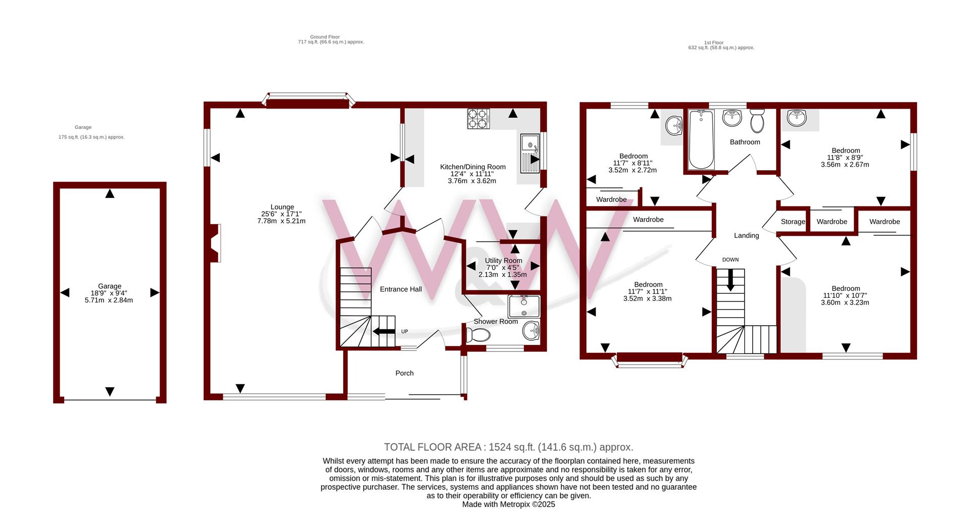 Three additional bedrooms with all benefitting from built in wardrobes & two enjoying their own sink