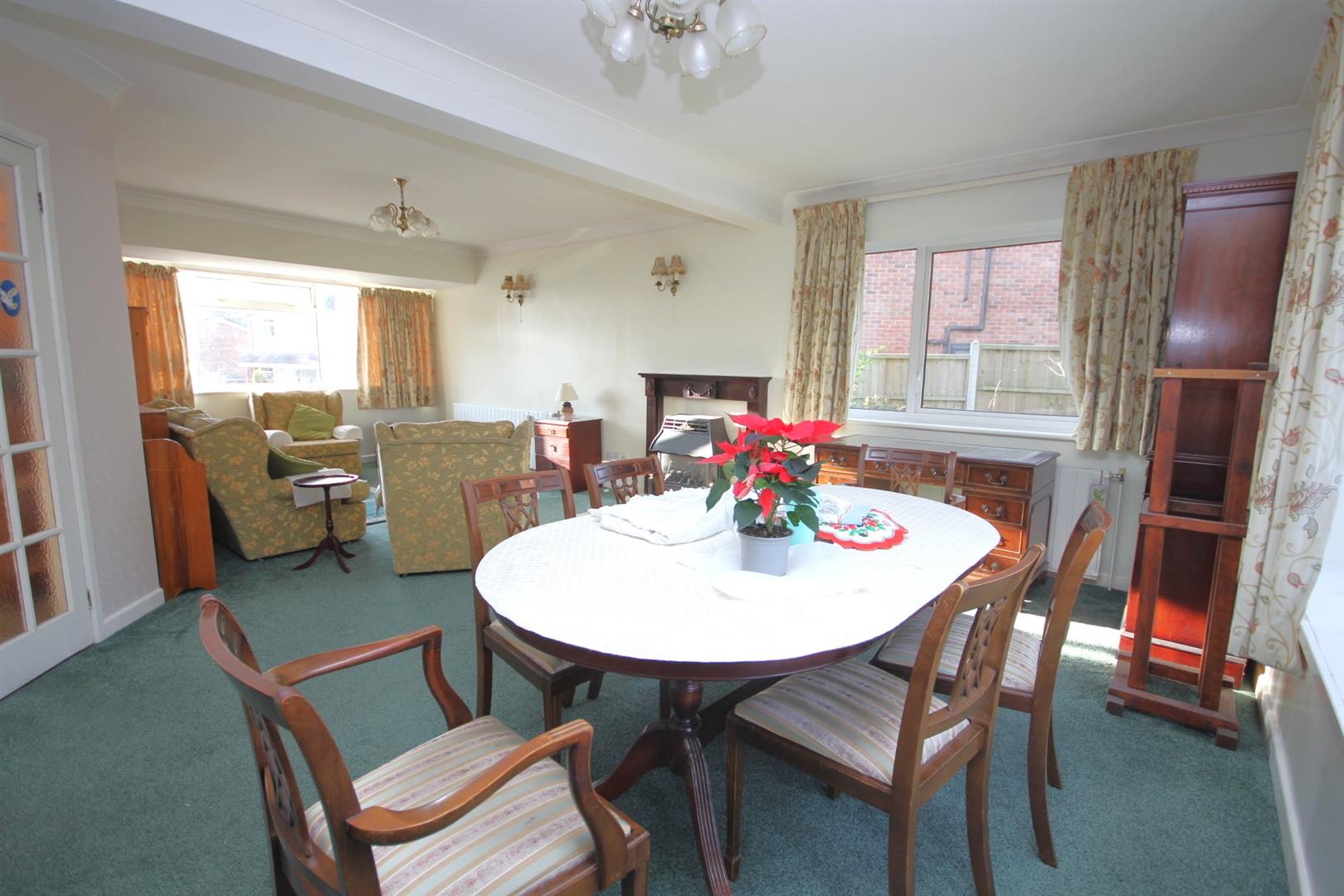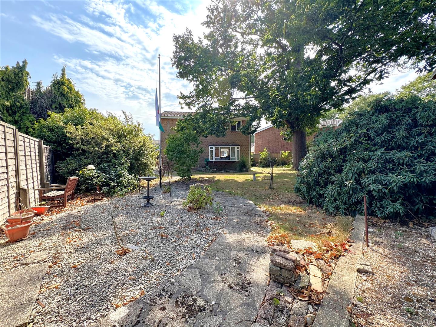 Rear & side gardens laid to lawn, paved patio areas, mature shrubbery/flower beds & shed to remain