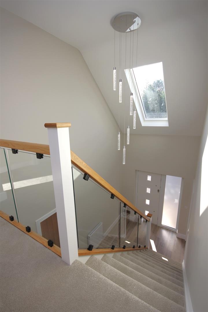 Welcoming entrance hall enjoying vaulted ceiling with feature skylight window, bespoke made understairs storage cupboards & Amtico flooring flowing into the kitchen/dining/living room, downstairs cloakroom & utility room