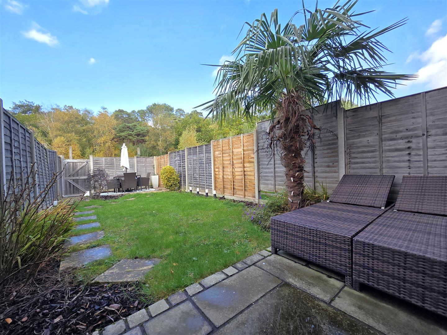Landscaped rear garden enjoying two paved patio areas, lawn with display shrubbery & rear access