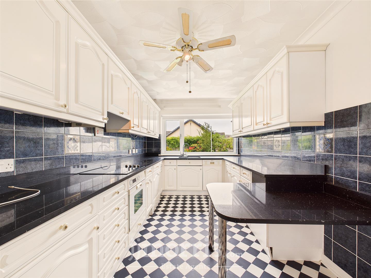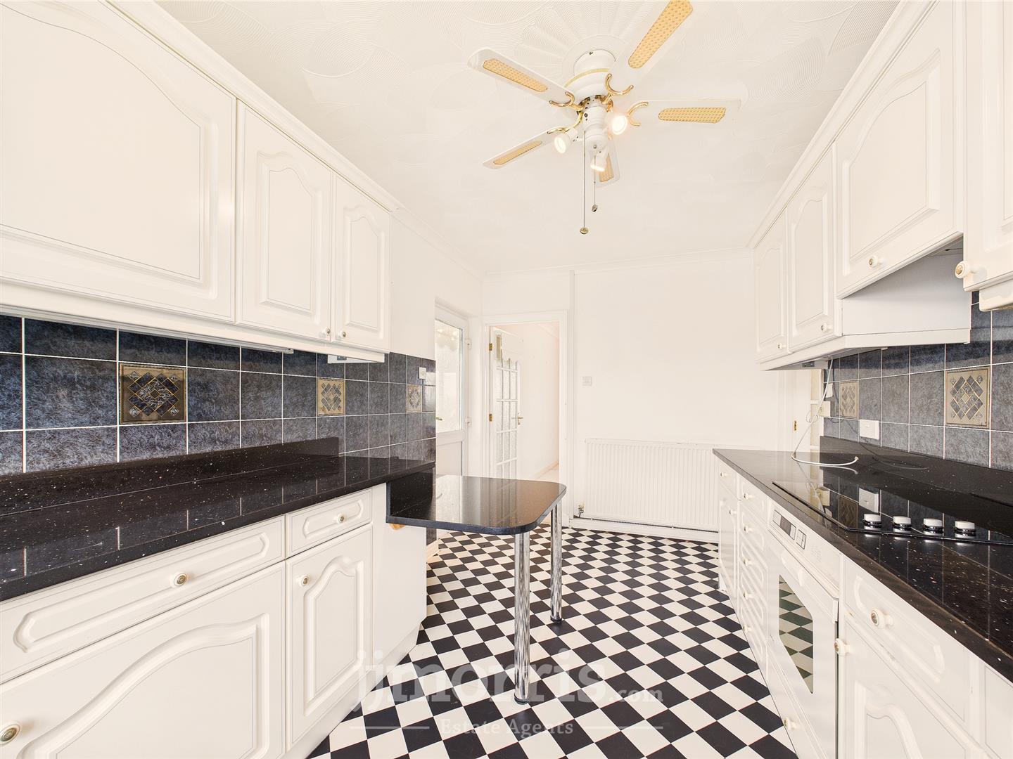 Kitchen - Fitted with a range of wall and base storage units with worktops over, breakfast bar, part tiled walls, double glazed window to rear, radiator, one and a half bowl sink, electric oven, 4 ring electric hob, extractor hood over, integrated Hotpoint dish washer. Door to inner hallway and door to: