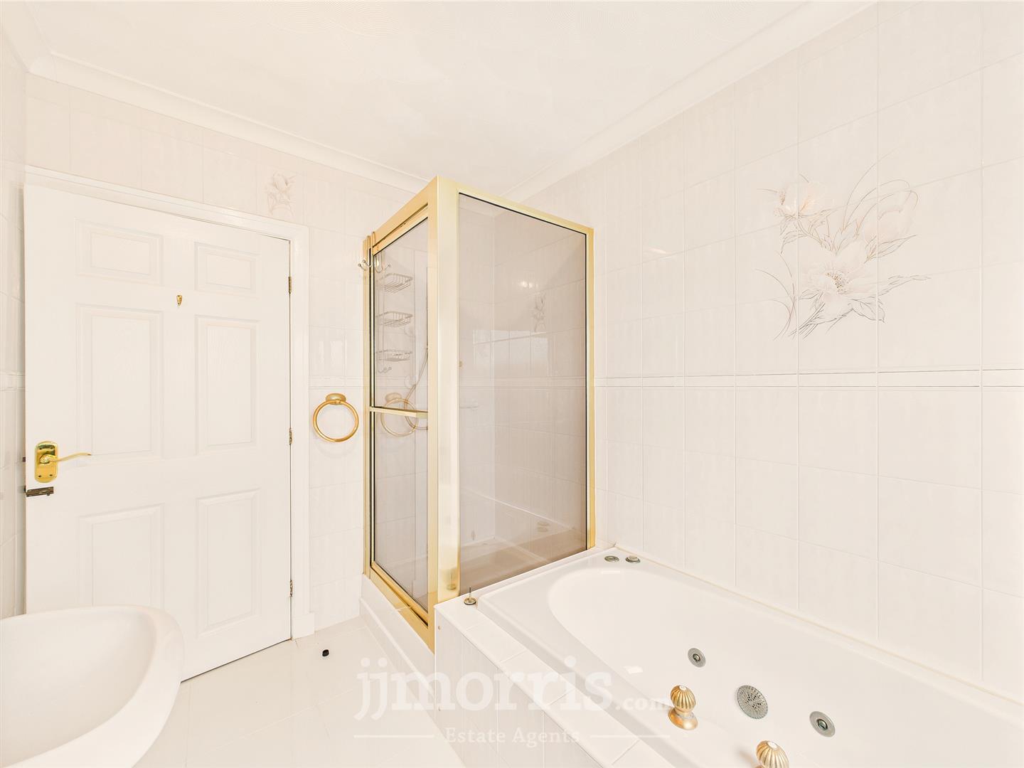Bathroom - Comprising a shower cubical, bath with whirlpool jets, W.C, pedestal wash hand basin, tiled walls, tiled flooring, frosted double glazed window to side.
