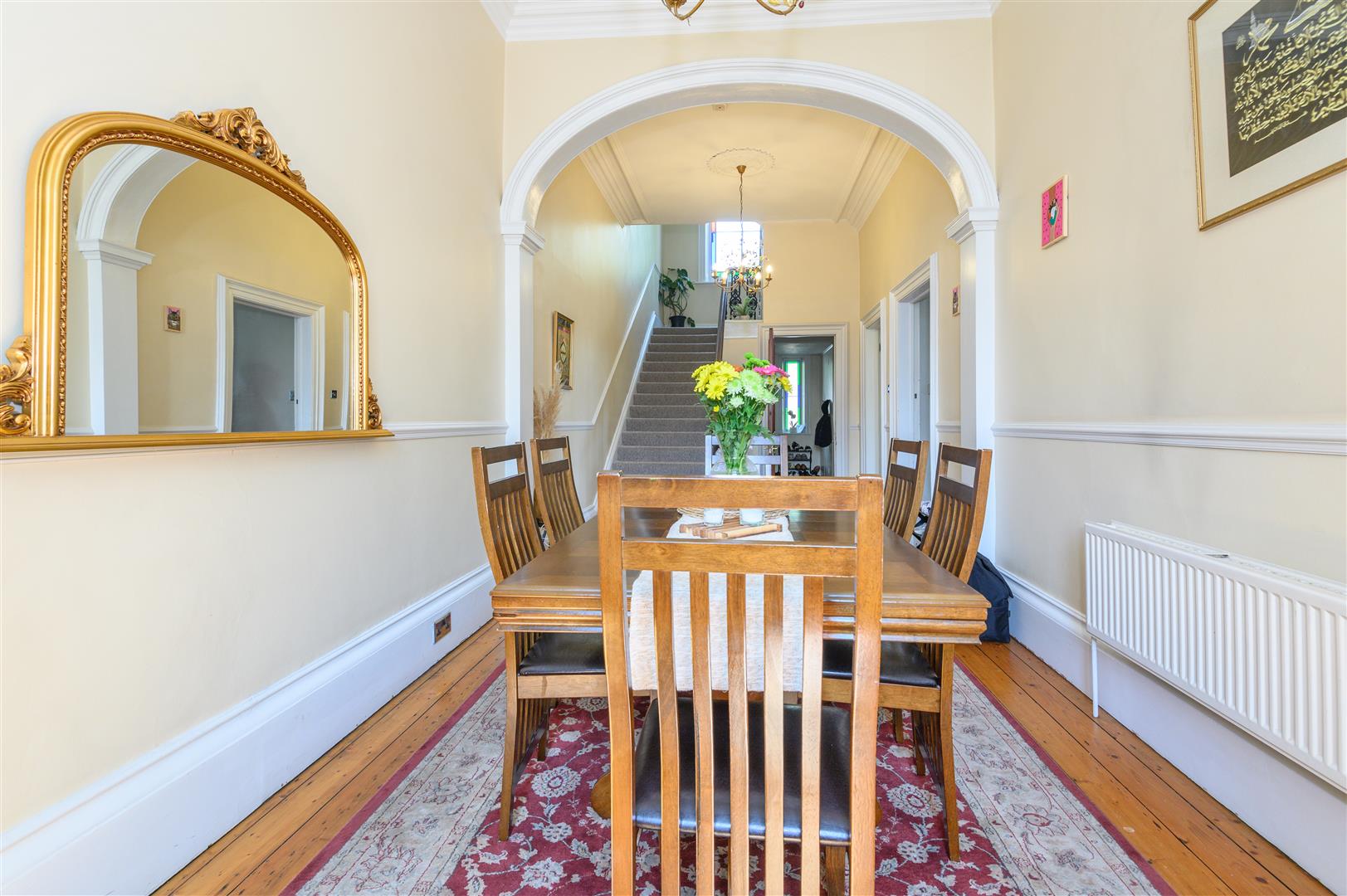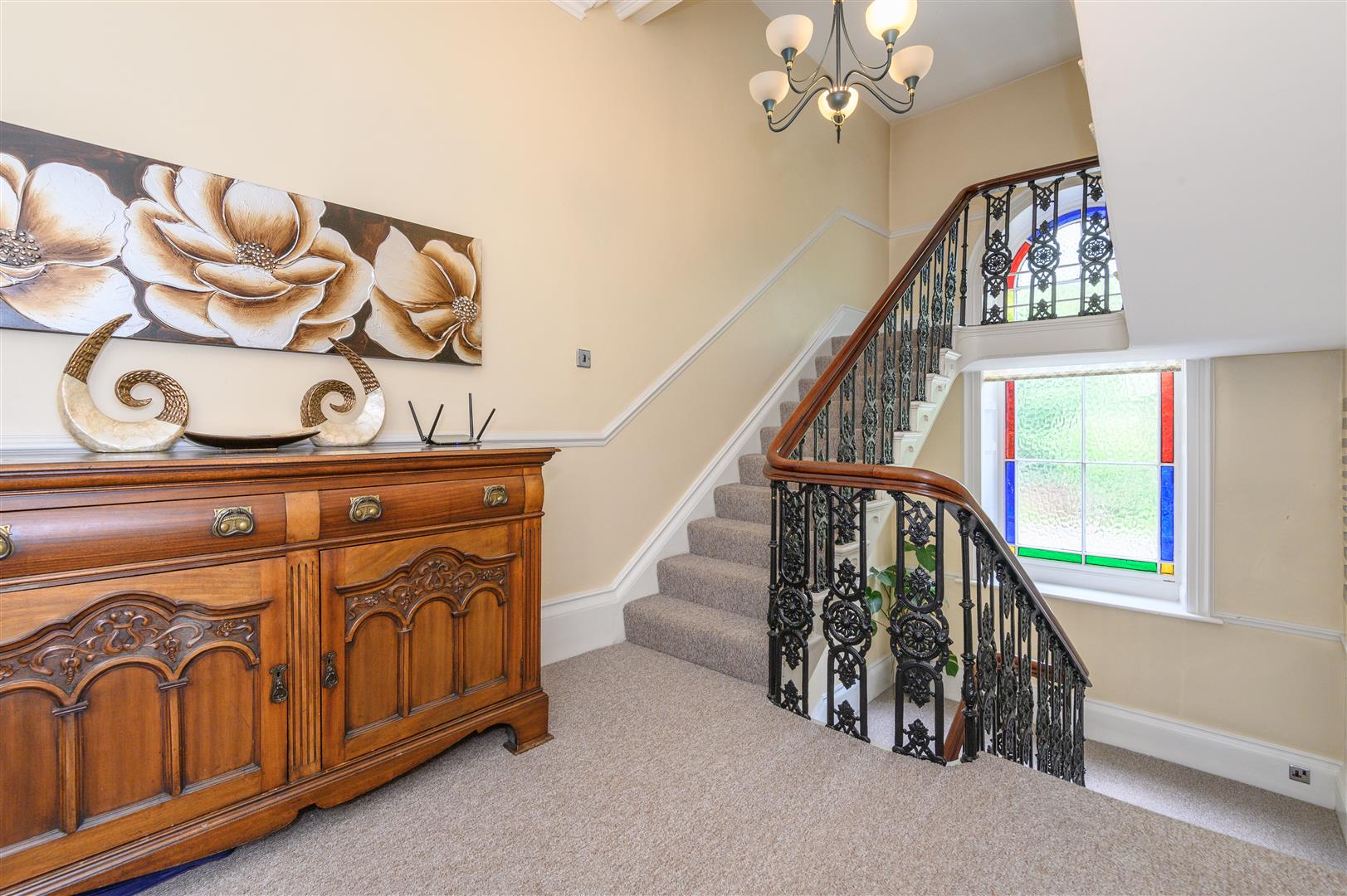 - Beautiful original features including stained glass, ceiling roses, and cornicing