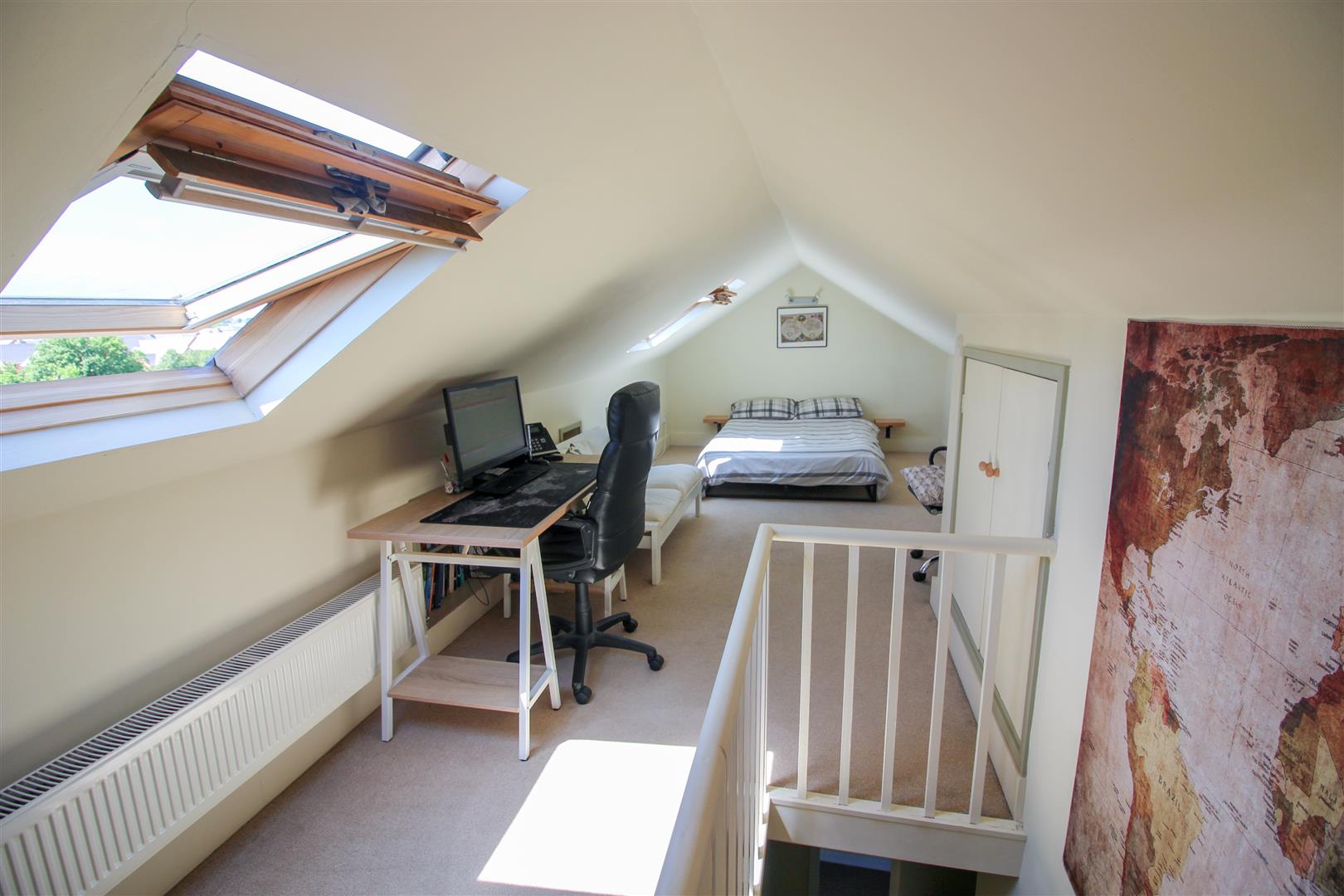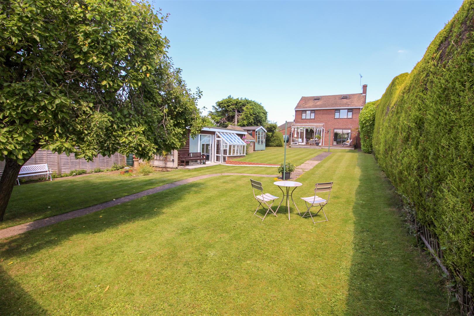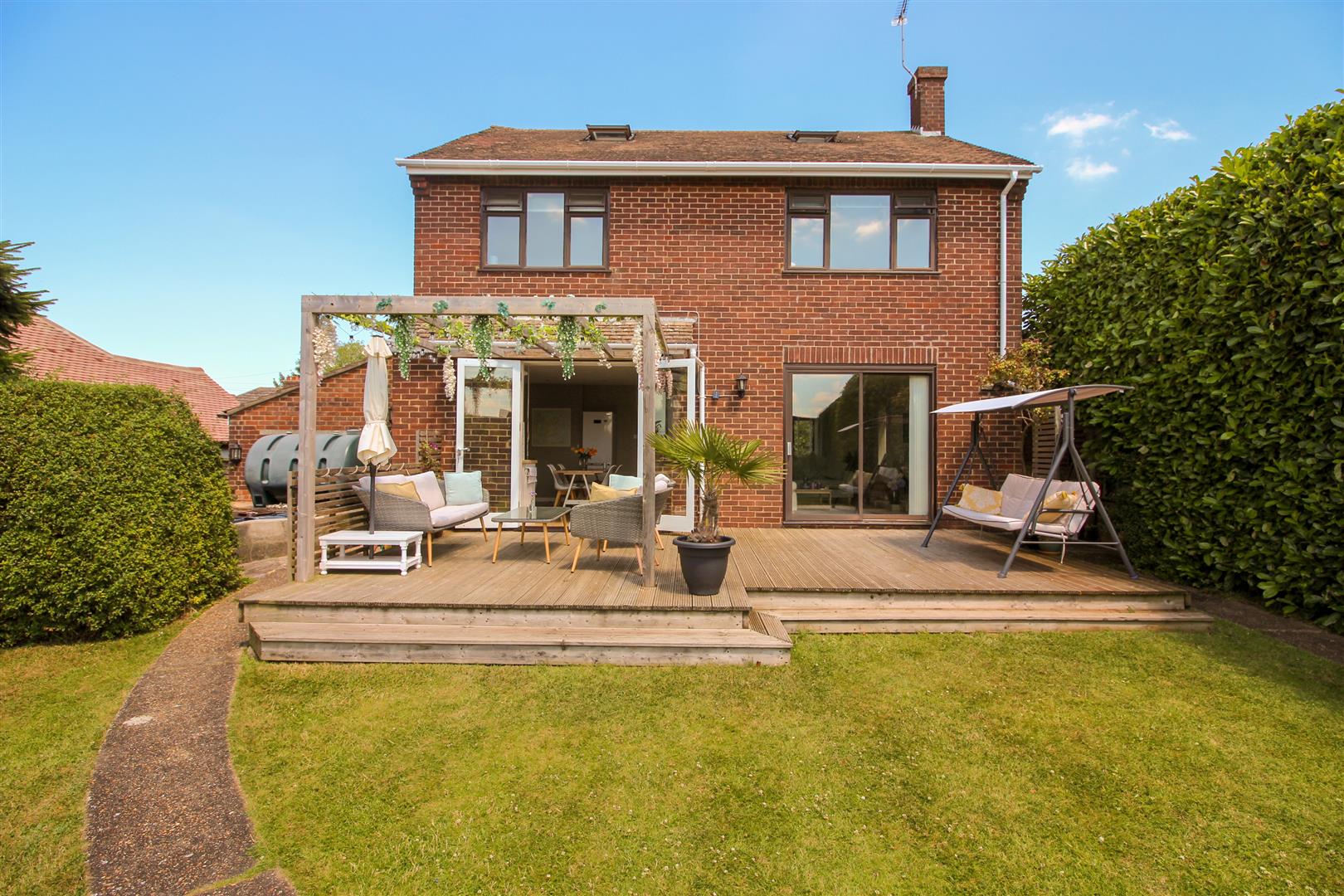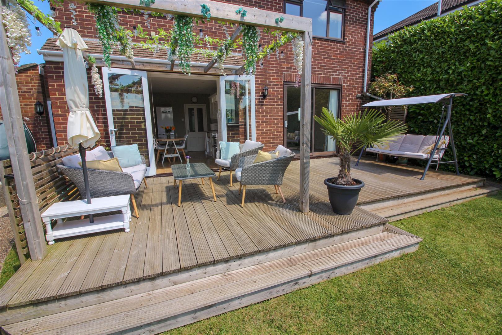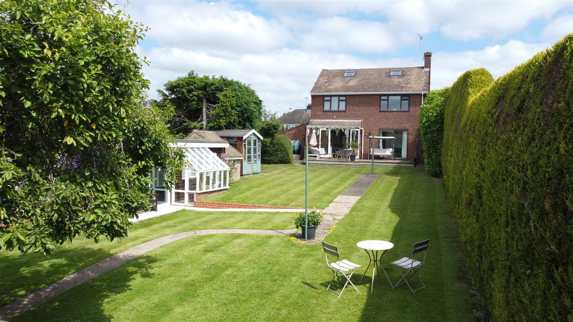 A rarely available three/four bedroom detached family home benefitting from a stunning 130ft south facing rear garden with large outbuilding and multiple sheds. Upon entering the large entrance hallway containing the downstairs w/c, to the left is a good size dual aspect lounge with french doors opening up onto the stunning rear garden. Downstairs also comprises a modern kitchen with space for dining table with another set of french doors leading out to the decked area, along with a garage and extra storage space in the hall between. The first floor offers three bedrooms, two of which have built in wardrobes and a sizeable family bathroom. The second floor offers another large room that is accessed via stairs with a private door and would make an ideal fourth bedroom or office space (as it is currently being used).