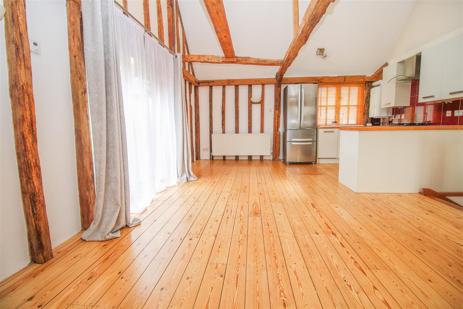 Offered with NO CHAIN is this rarely available, two bedroom end terrace barn conversion, ideally located just a stones throw away from Sawbridgeworth Train Station. On the ground floor there is an entrance hallway leading to two bedrooms and a family bathroom with a white three piece suite plus plenty of storage, whilst upstairs there is an open plan lounge/kitchen/diner, with vaulted ceilings, character beams, a range of modern fitted wall and base units and a balcony. Outside there is a small gated front garden and allocated parking. Maltings Wharf is located just off Station Road, within walking distance of excellent Bell Street, excellent local schools, open fields and beautiful walks along the River Stort.