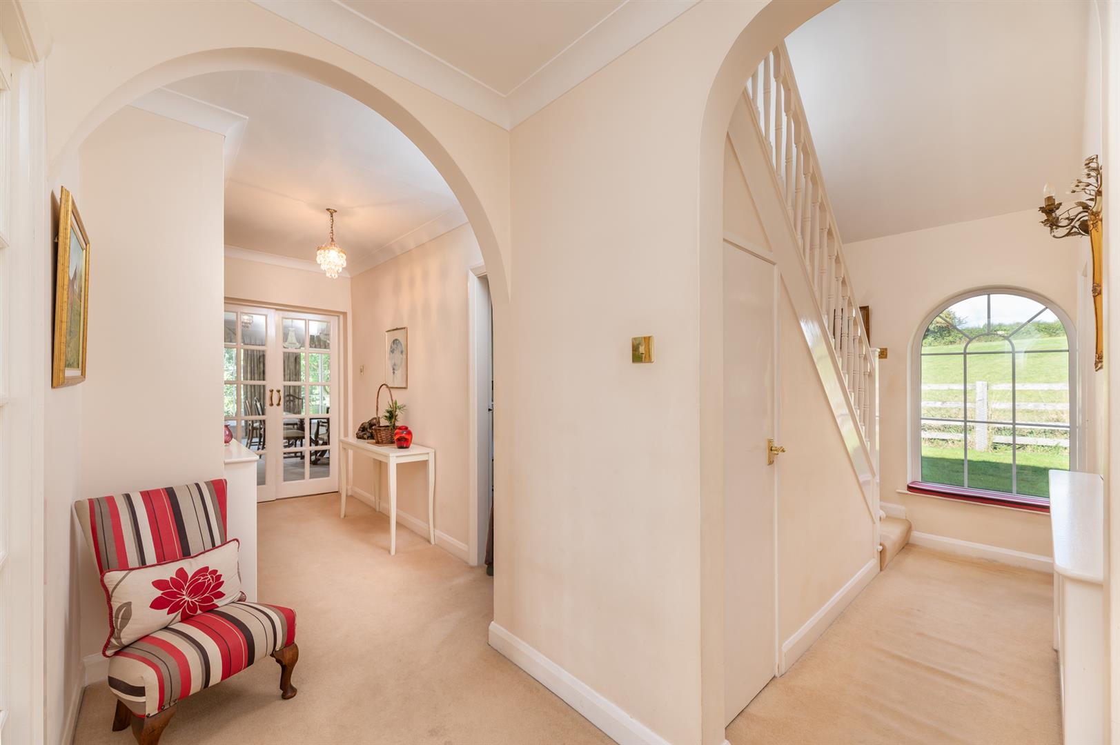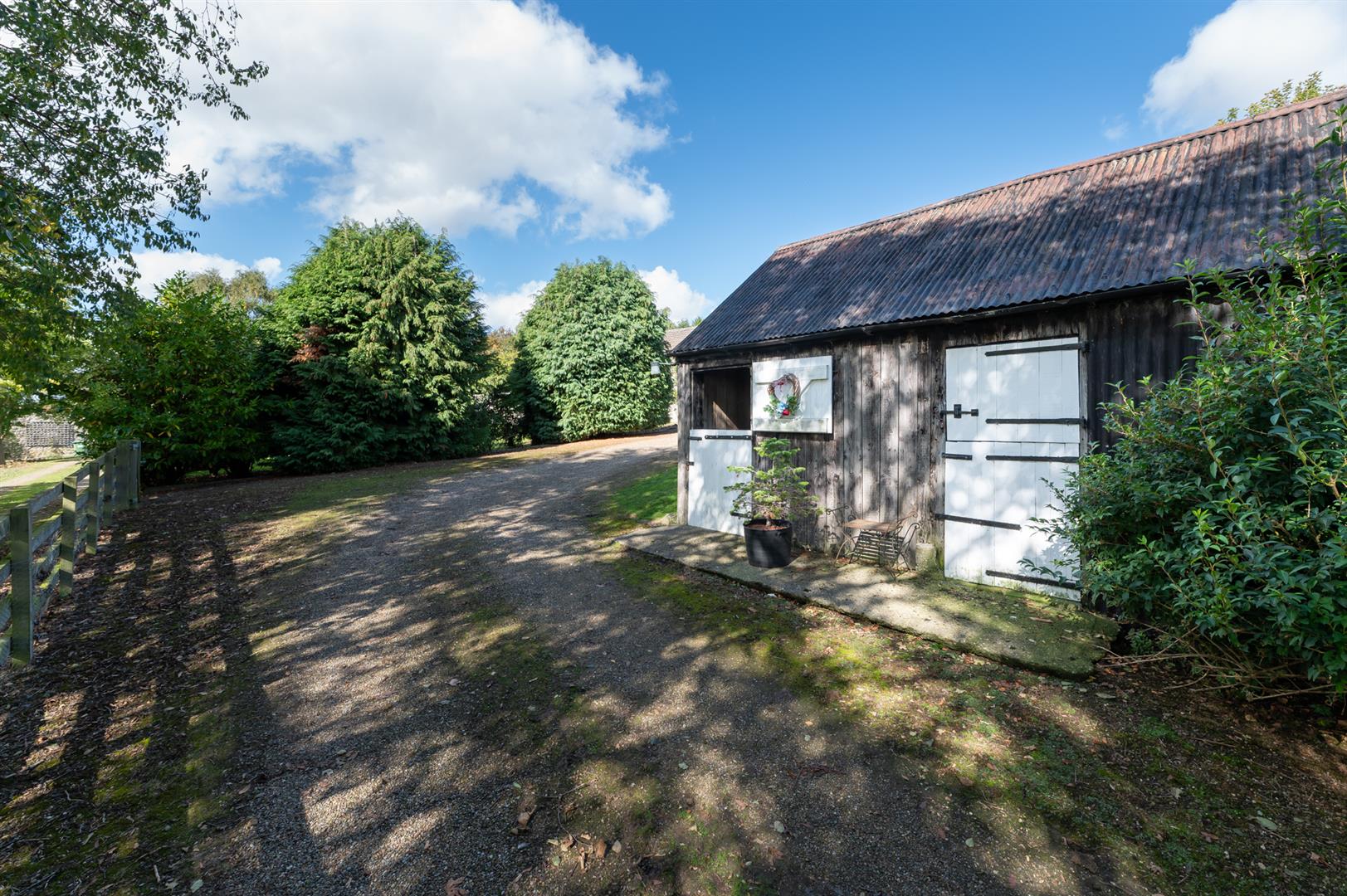 Outside, the grounds are a real highlight. The property includes a paddock, two stables, double garage, greenhouse and extensive lawned gardens. Whether keeping horses, growing produce or simply enjoying the setting, the land offers enormous potential.