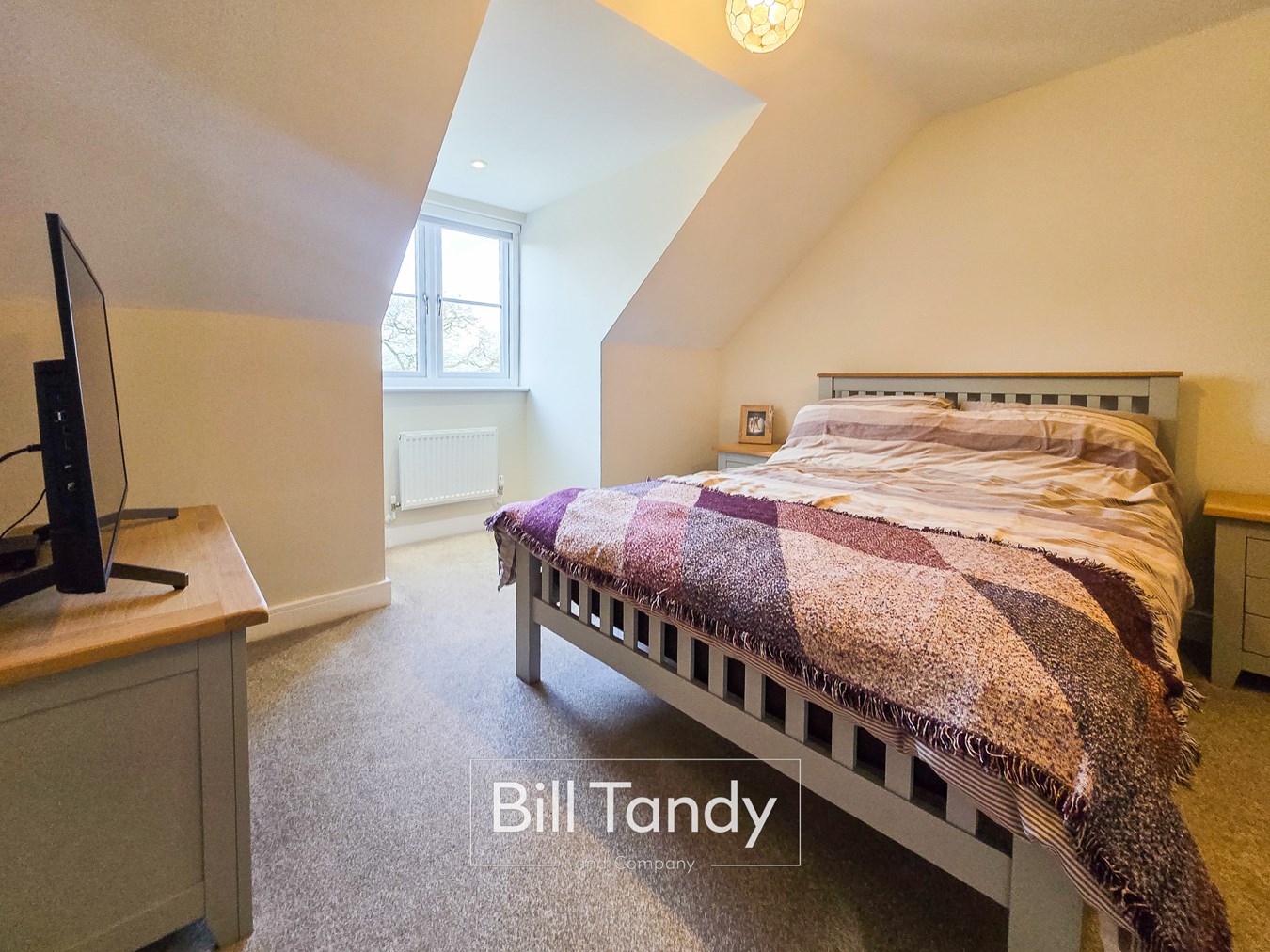 5.06m into reduced ceiling height x 3.40m (16' 7" x 11' 2" into reduced ceiling height) this stunning main bedroom has a dormer style double glazed window to front with feature views, radiator, loft access and door to: