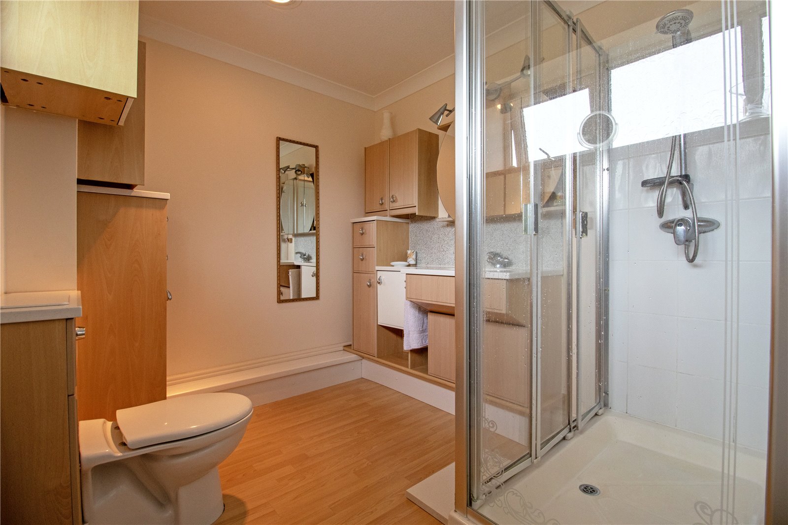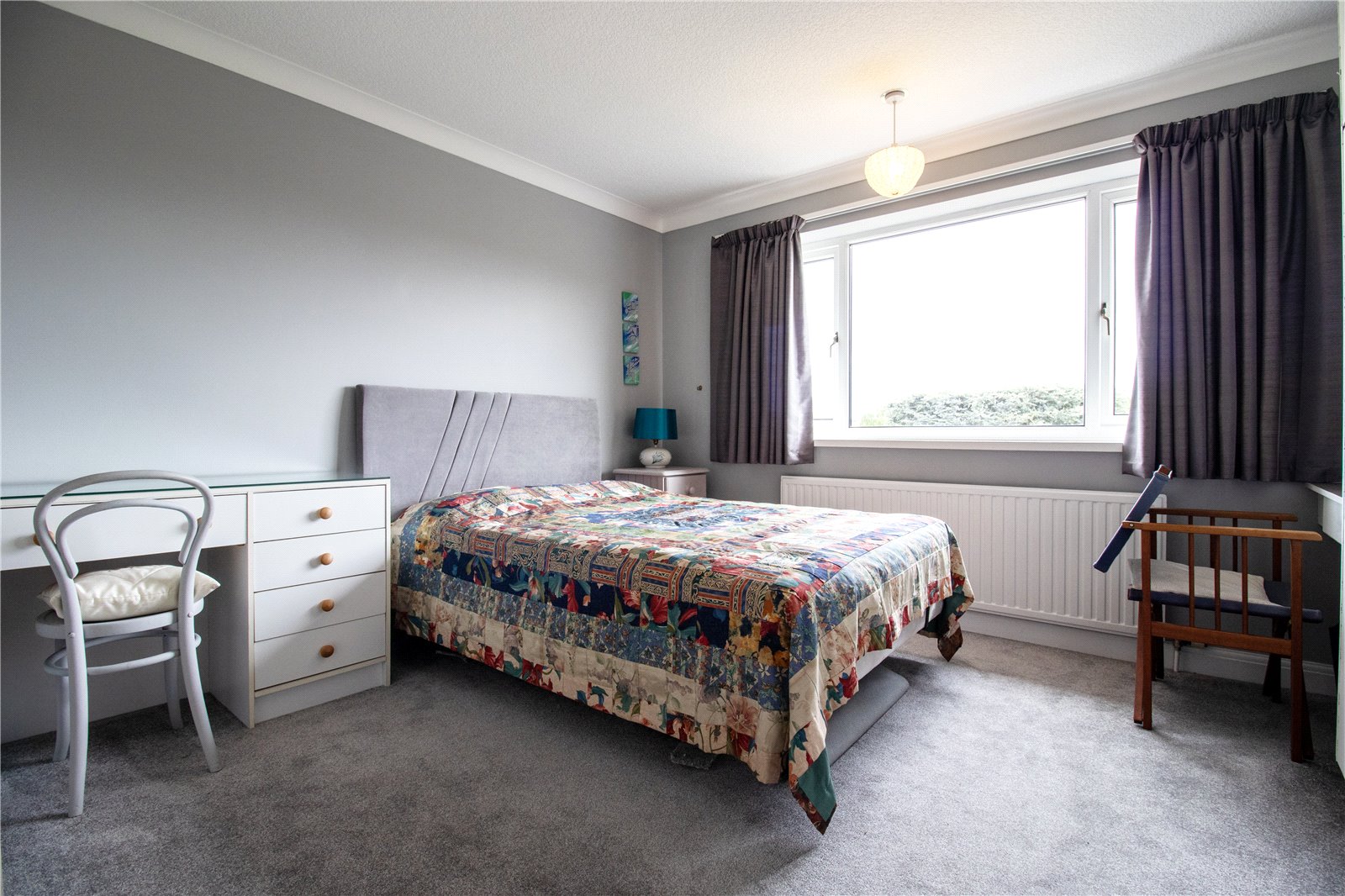 Upstairs, the first floor offers five double bedrooms, all with fitted wardrobes. Two bedrooms benefit from modern en-suite shower rooms, and one features a balcony overlooking the scenic rear aspect. A contemporary four-piece family bathroom completes the upper floor.
