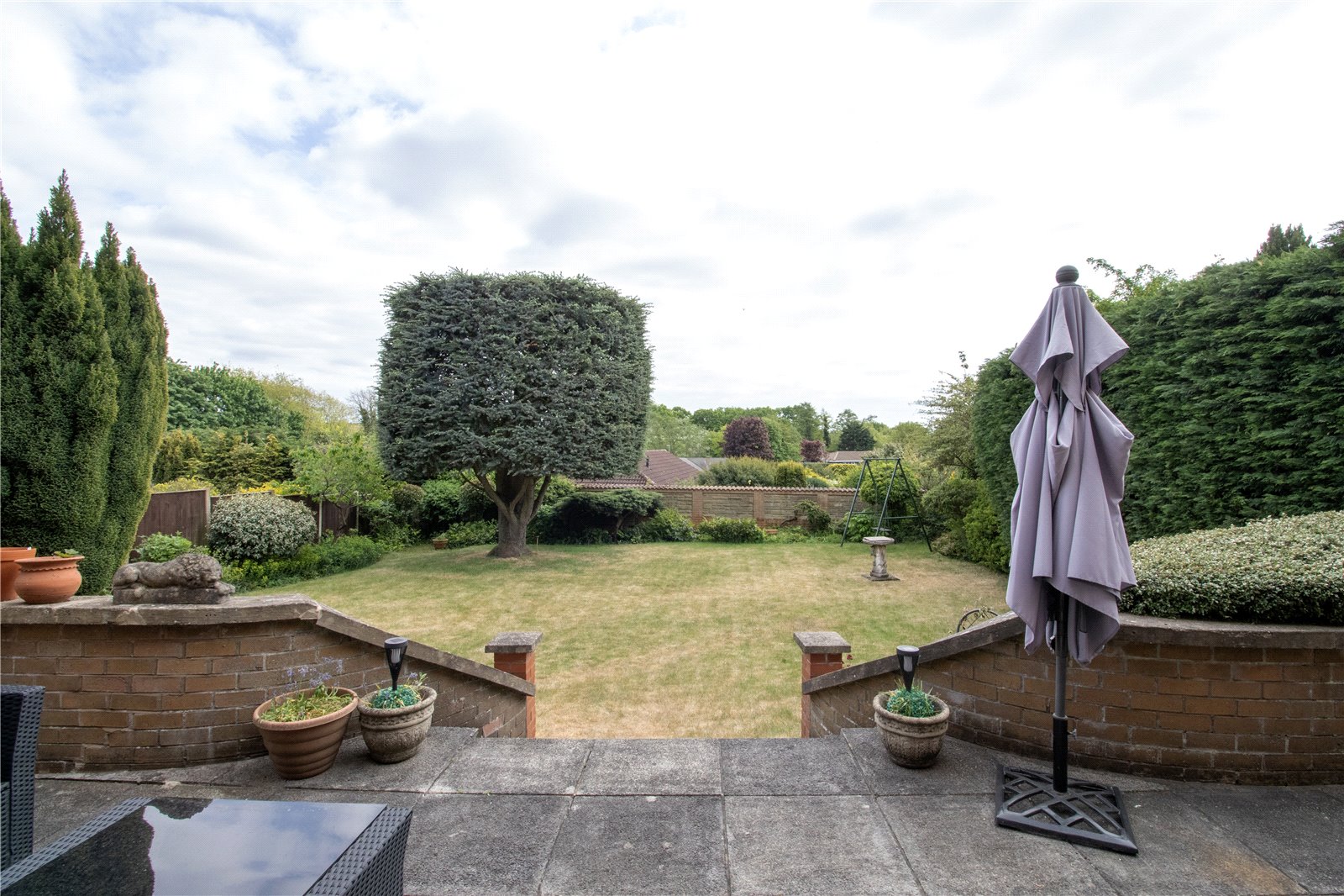 Externally, the property boasts a sweeping horseshoe driveway providing ample off-road parking and access to the integral double garage. The south-facing rear garden is fully enclosed and enjoys the sun throughout the day, with a well-maintained lawn and a raised patio—perfect for outdoor entertaining.