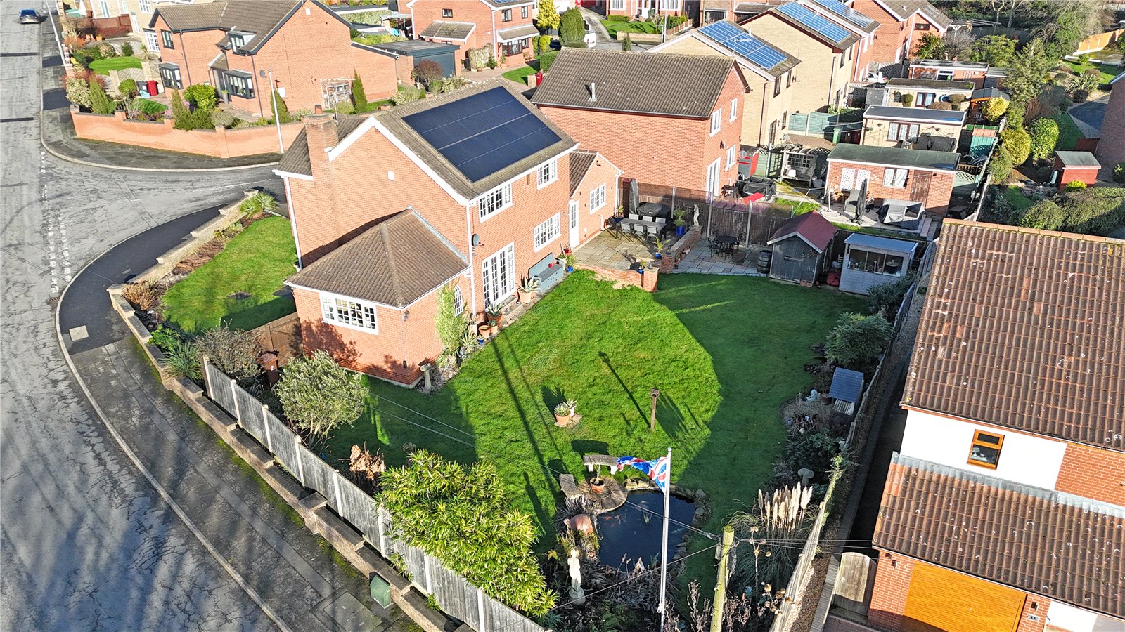 Occupying a generous corner plot, the property benefits from a walled boundary and an attractive lawned frontage, with a driveway providing ample off-road parking and access to the integral double garage. The enclosed rear garden is a particular feature of the home, offering excellent levels of privacy and wrapping around the property to create a wonderful outdoor space. Mainly laid to lawn, the garden also boasts a raised paved patio ideal for entertaining, a charming pond, With its desirable south-facing aspect, the garden enjoys sunshine throughout the day.