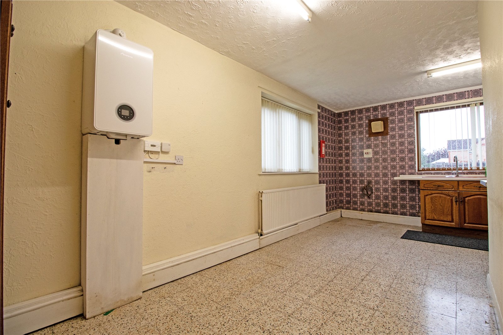 The bungalow itself briefly comprises an entrance hall, spacious lounge, open-plan dining kitchen, dining room, two double bedrooms, a stylish bathroom, and a separate WC. A recently installed boiler adds to the home’s practicality.