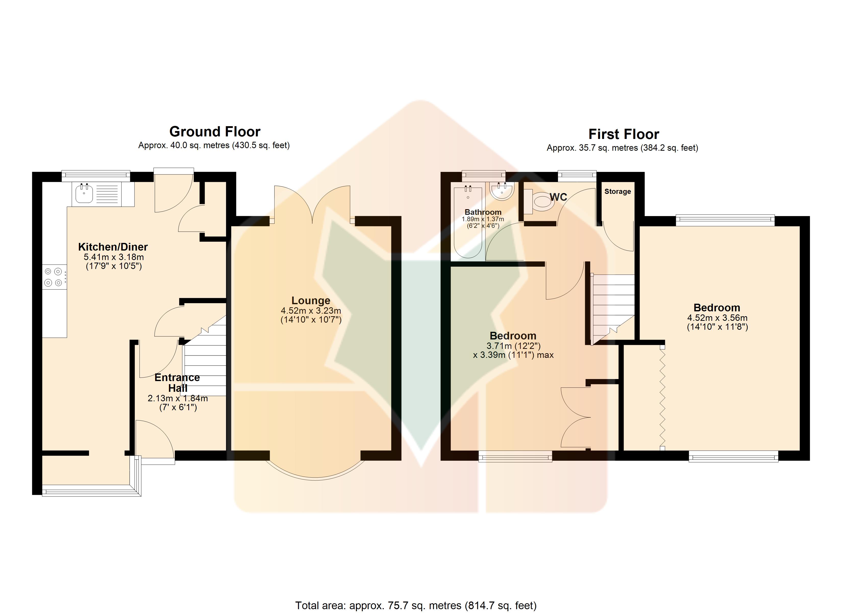 To the first floor are two double bedrooms, both benefiting from fitted storage, serviced by a family bathroom and a separate WC.