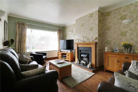 The extended and well proportioned accommodation briefly comprises an L-shaped entrance hall, a front-facing lounge with feature fireplace, and a modern fitted kitchen with integrated appliances opening into a dining area overlooking the rear garden. There are three good-sized bedrooms all served by a contemporary family bathroom.