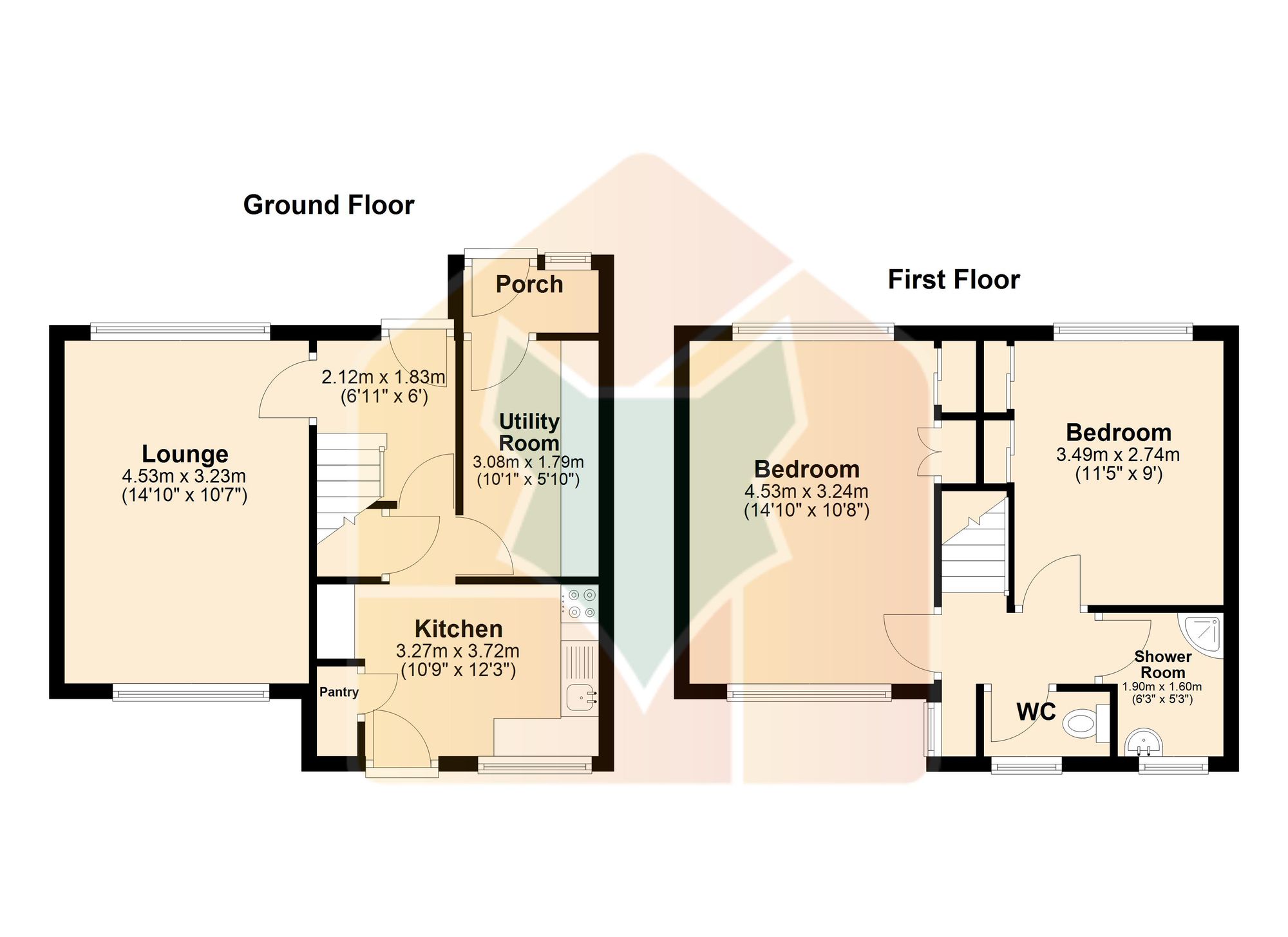 The home briefly comprises an entrance hall, a generous lounge, a utility area, and a fitted kitchen. To the first floor, there are two double bedrooms, complemented by a modern shower room and separate W.C.