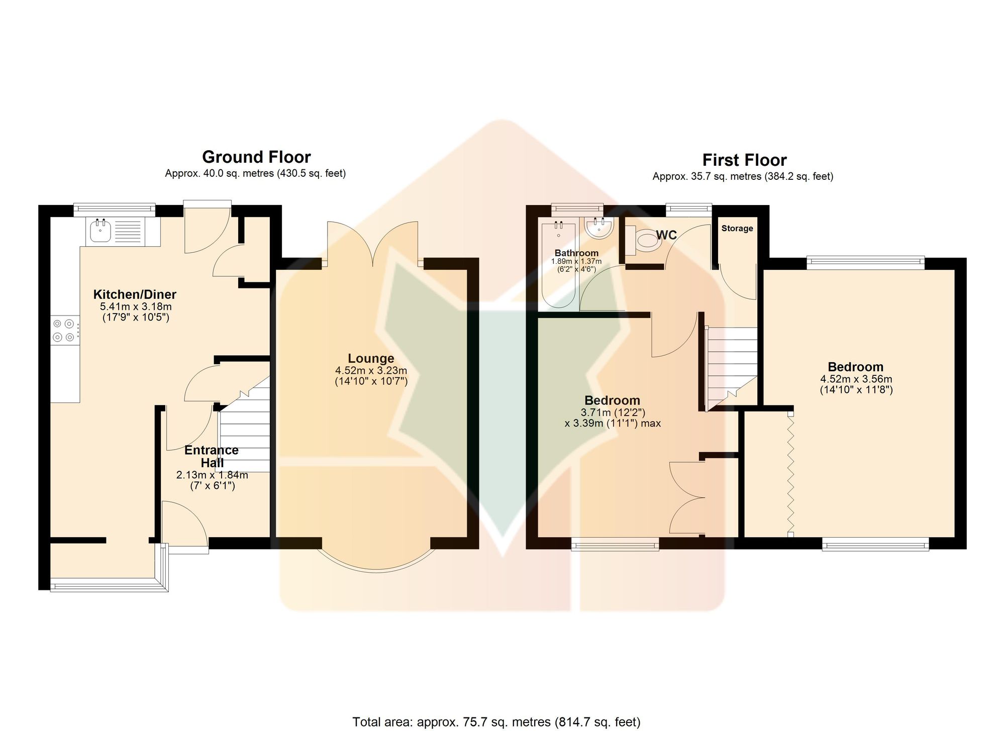To the first floor are two double bedrooms, both benefiting from fitted storage, serviced by a family bathroom and a separate WC.