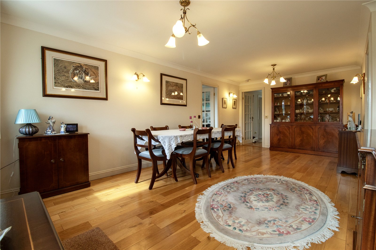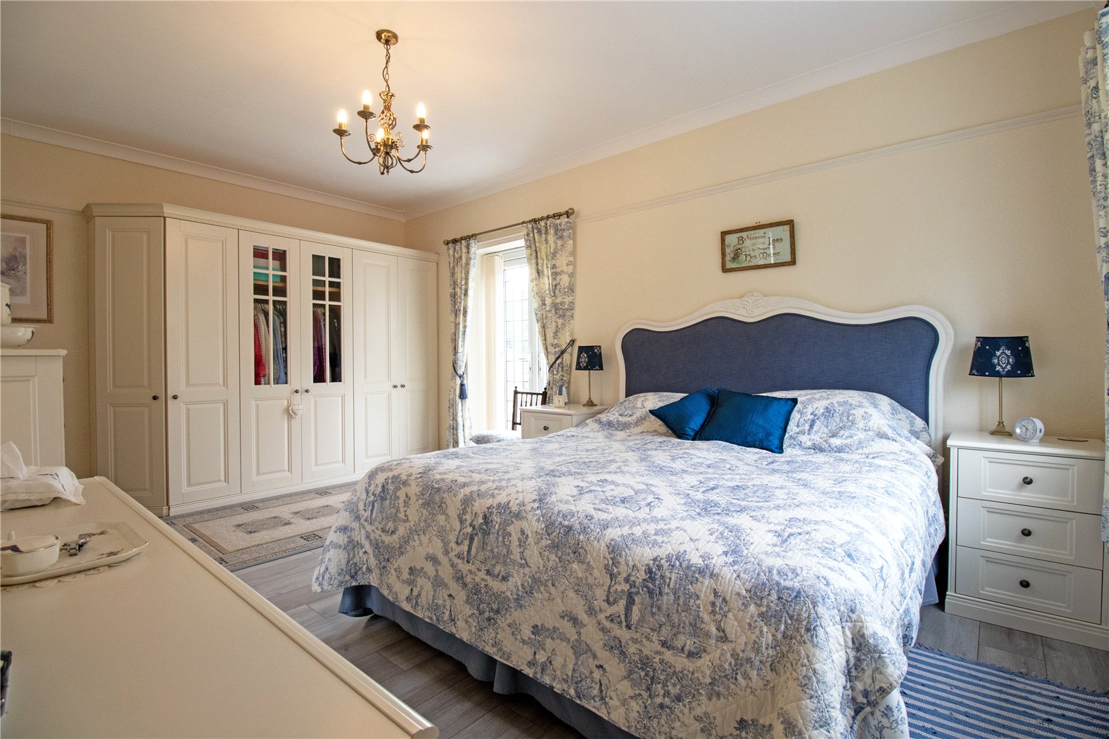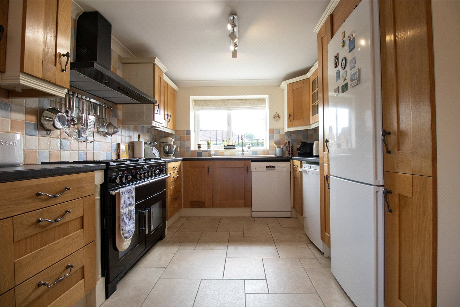 Internally, the property features a spacious reception hallway leading to a bright and airy lounge with dual-aspect windows and a charming log- effect gas stove. A garden room offers a relaxing space with views over the landscaped gardens, while the kitchen diner is well-appointed and generously sized, offering ample storage and workspace, with plenty of room for a dining table—ideal for family meals or entertaining. A separate utility room provides additional practicality.