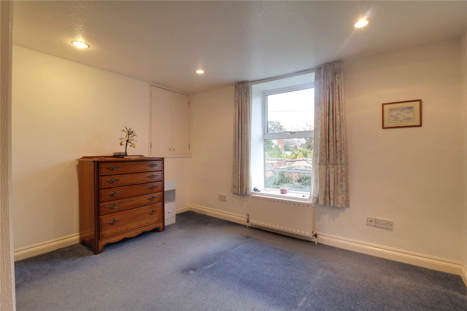 Master Bedroom 1 11'2" x 11'8" (3.4m x 3.56m). With a front uPVC double glazed window, ceiling spotlights, a built-in over the stairs storage cupboard which houses a gas boiler.