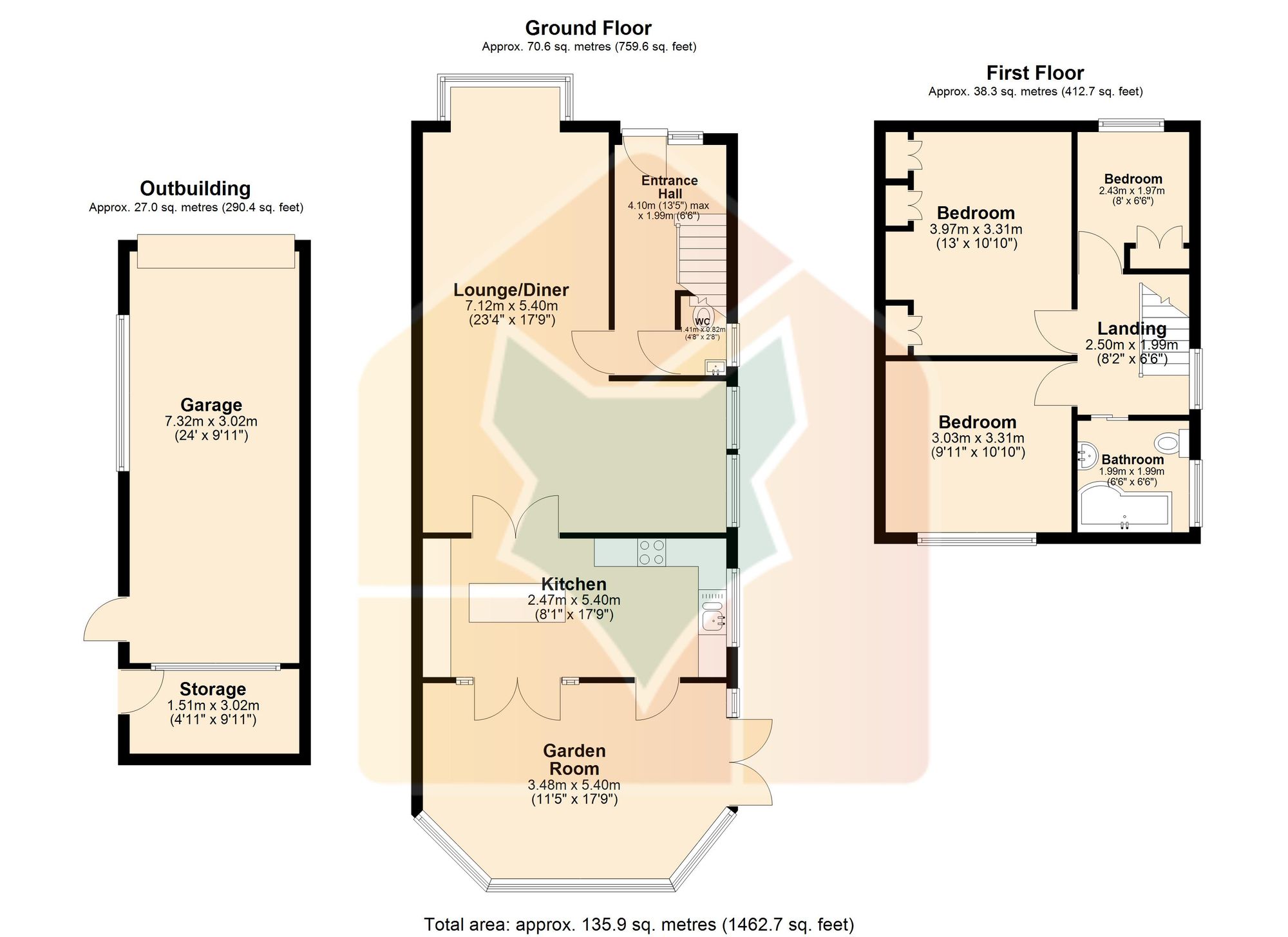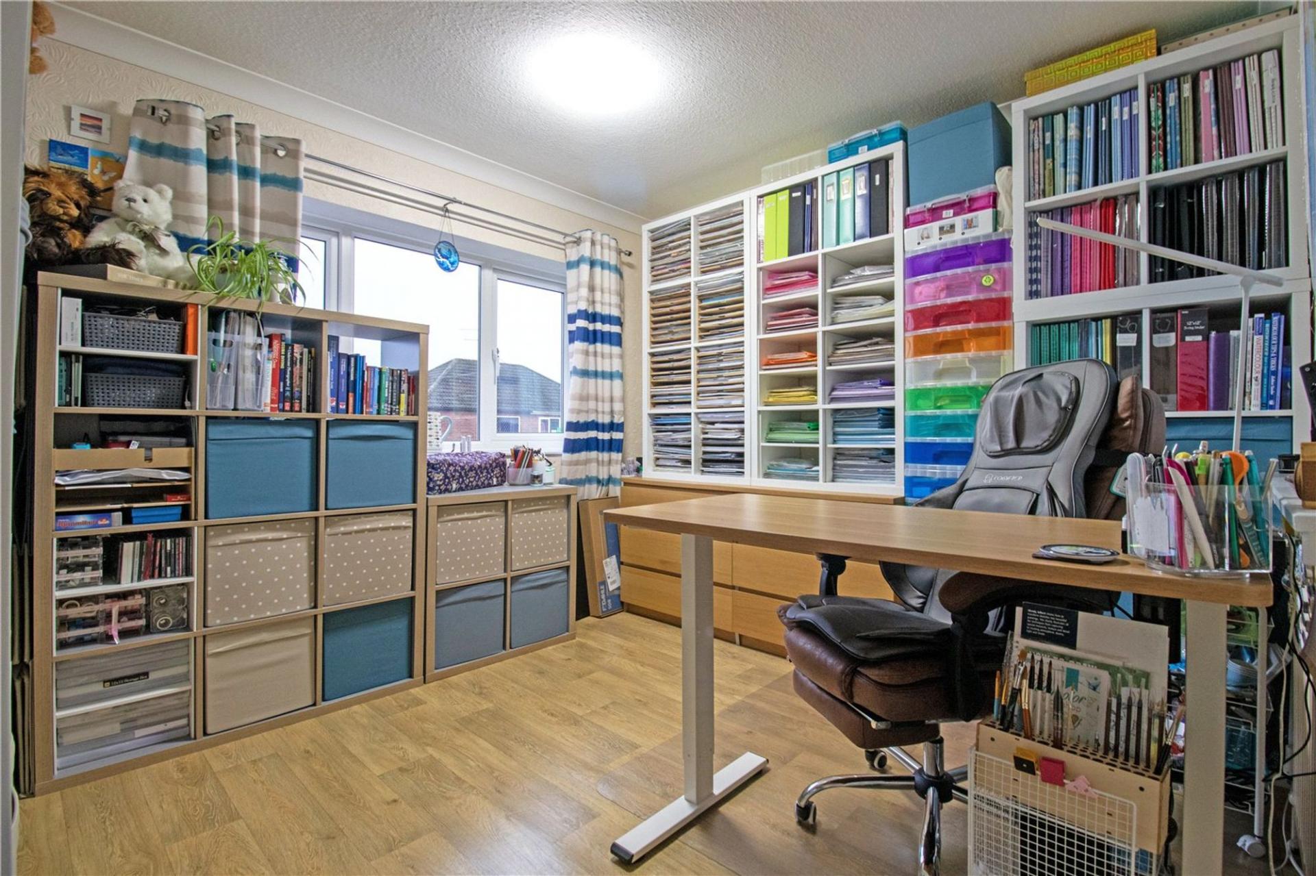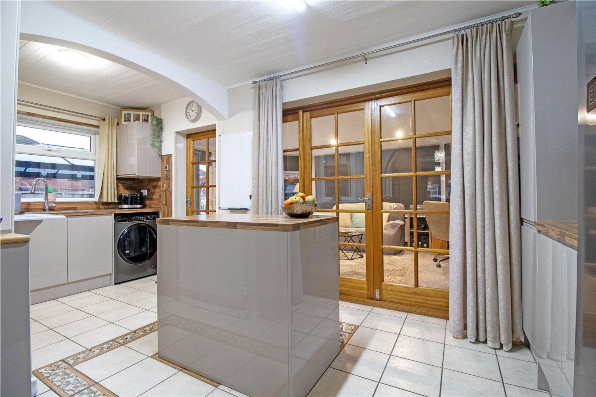 Internally, the accommodation is both stylish and versatile, beginning with a welcoming entrance hall leading through to a spacious and light-filled lounge diner — ideal for both everyday family living and entertaining. The heart of the home is the contemporary Wren-fitted kitchen, installed approximately four years ago, which offers modern cabinetry, quality finishes and ample workspace. This flows seamlessly into a bright and airy garden room, creating an additional reception space that overlooks the rear garden. A ground floor W.C. completes the downstairs layout.