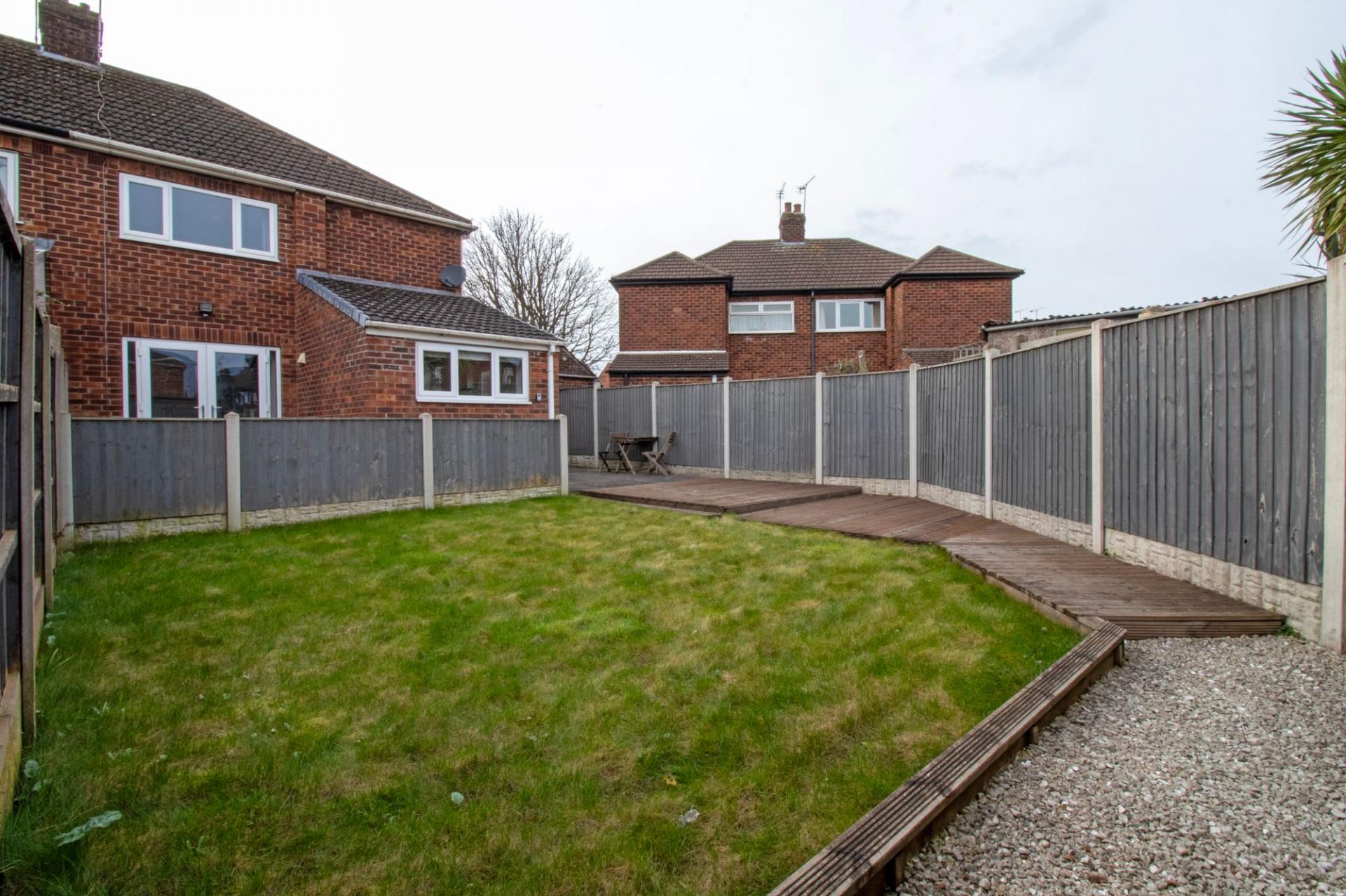 Immaculately presented throughout, this impressive and deceptively spacious semi-detached home offers a superb turn-key opportunity, ideal for buyers seeking stylish, move-in-ready accommodation. Perfectly positioned within easy reach of a wide range of local amenities, including shops, popular pubs, well-regarded schools, and excellent transport links, the property combines everyday convenience with comfortable modern living. The accommodation is both well-proportioned and thoughtfully arranged, briefly comprising an entrance porch leading into a welcoming hallway, a generous and inviting lounge ideal for relaxation, and a substantial dining room perfectly suited to both family living and entertaining. The property is further enhanced by a beautifully appointed breakfasting kitchen, finished in a contemporary style and designed with both functionality and sociability in mind. To the first floor, the home continues to impress with three spacious and well-presented bedrooms, all serviced by a sleek and modern family bathroom suite. Of particular note, the two principal bedrooms benefit from recently installed air conditioning units, offering both heating and cooling to ensure year-round comfort. Externally, the property enjoys attractive kerb appeal, set behind a low-level boundary wall with a driveway providing off-road parking. The remainder of the frontage is finished with low-maintenance pebbled landscaping, creating a neat and tidy first impression. To the rear, the enclosed garden is of a particularly generous size and has been designed with both relaxation and entertaining in mind, featuring a raised timber decked seating area which flows onto a well-maintained lawn. A useful storage shed is situated to the rear, adding further practicality to this already versatile outdoor space.