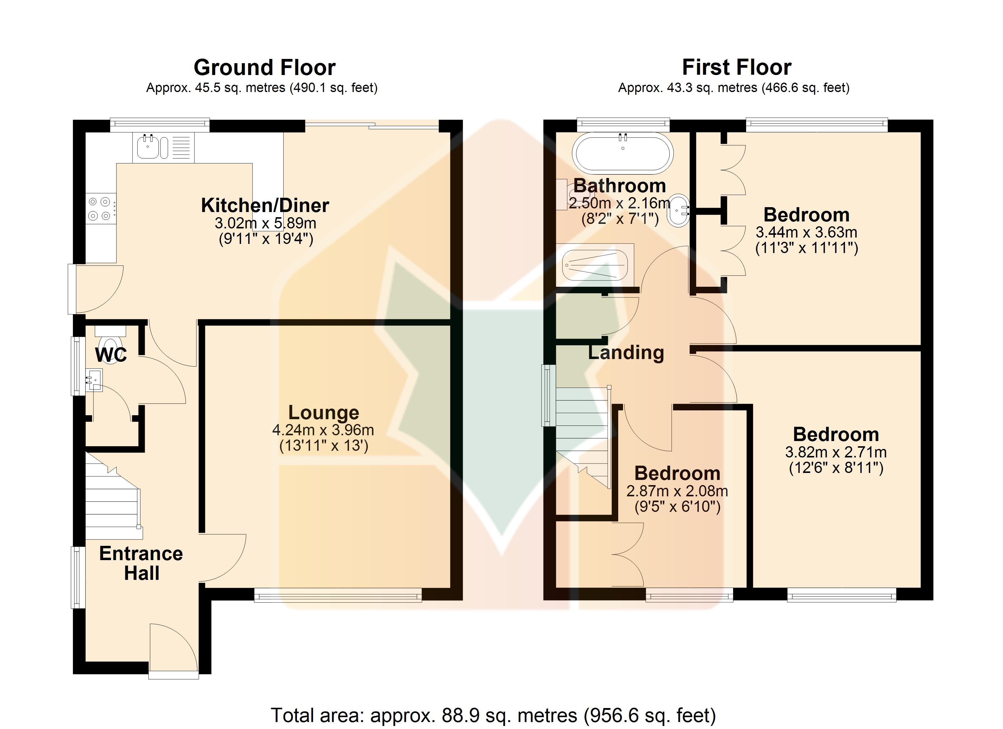 Lounge 13'11" x 13' (4.24m x 3.96m).