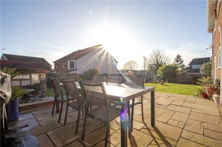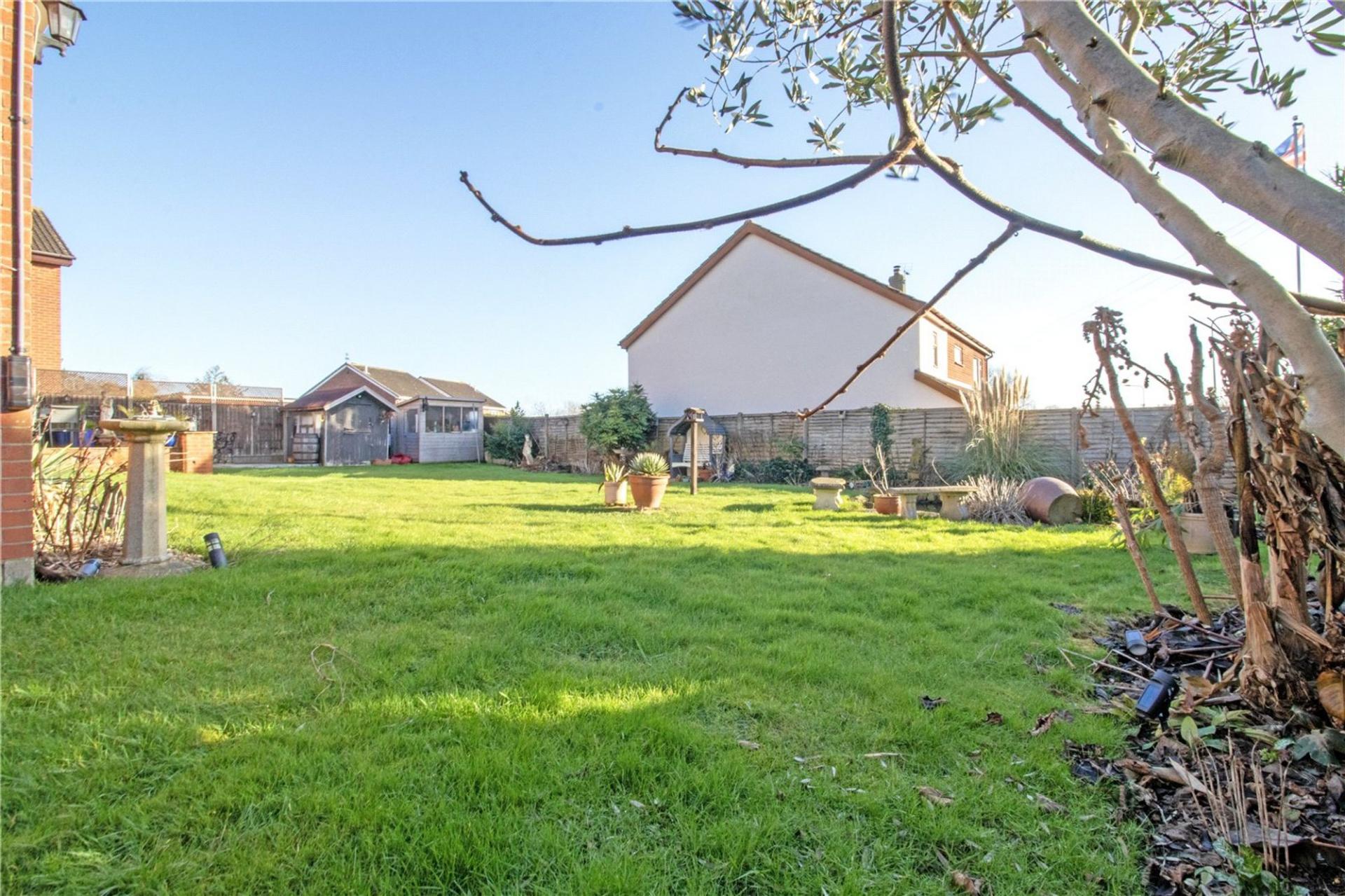 Occupying a generous corner plot, the property benefits from a walled boundary and an attractive lawned frontage, with a driveway providing ample off-road parking and access to the integral double garage. The enclosed rear garden is a particular feature of the home, offering excellent levels of privacy and wrapping around the property to create a wonderful outdoor space. Mainly laid to lawn, the garden also boasts a raised paved patio ideal for entertaining, a charming pond, With its desirable south-facing aspect, the garden enjoys sunshine throughout the day.