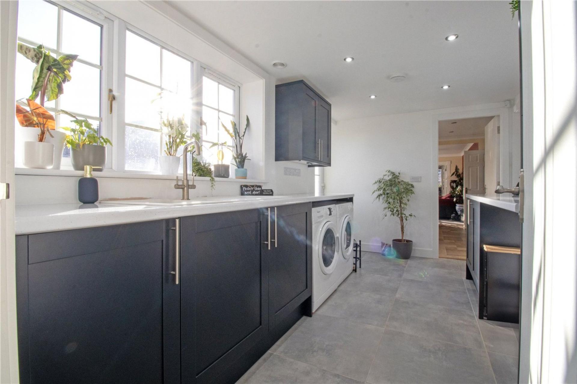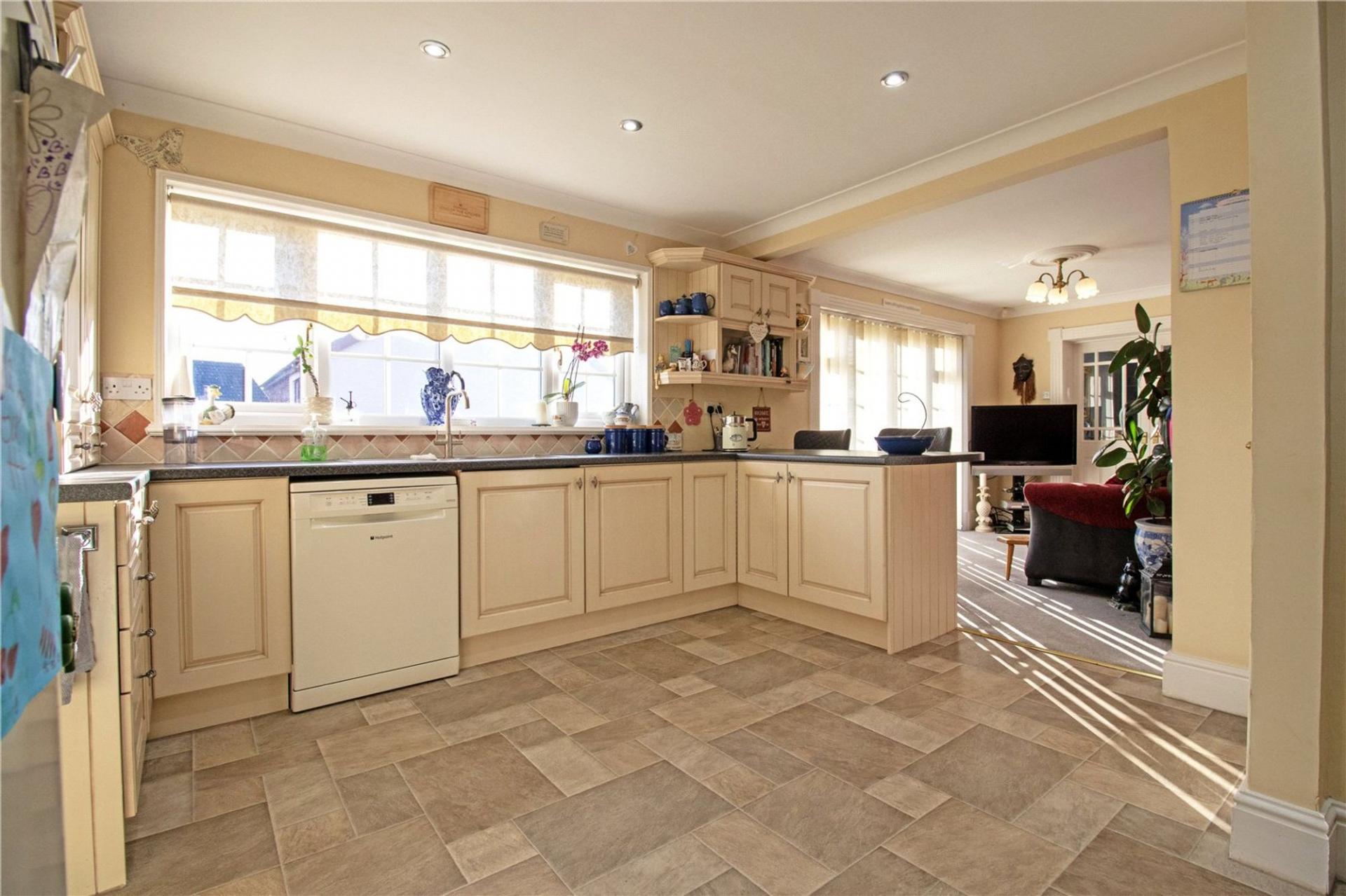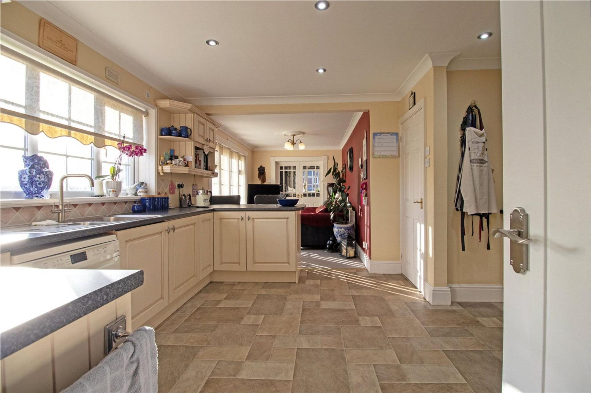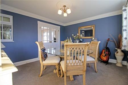 Internally, the accommodation is both spacious and thoughtfully arranged. A welcoming entrance hall leads through to a generous lounge, ideal for relaxation, while the beautifully maintained fitted open-plan kitchen diner provides an inviting heart of the home, offering ample space for family living and entertaining. A separate formal dining room adds further flexibility and could equally serve as a ground-floor bedroom if required. Additional ground-floor highlights include a well-appointed utility room and an impressive shower room finished to a high standard.