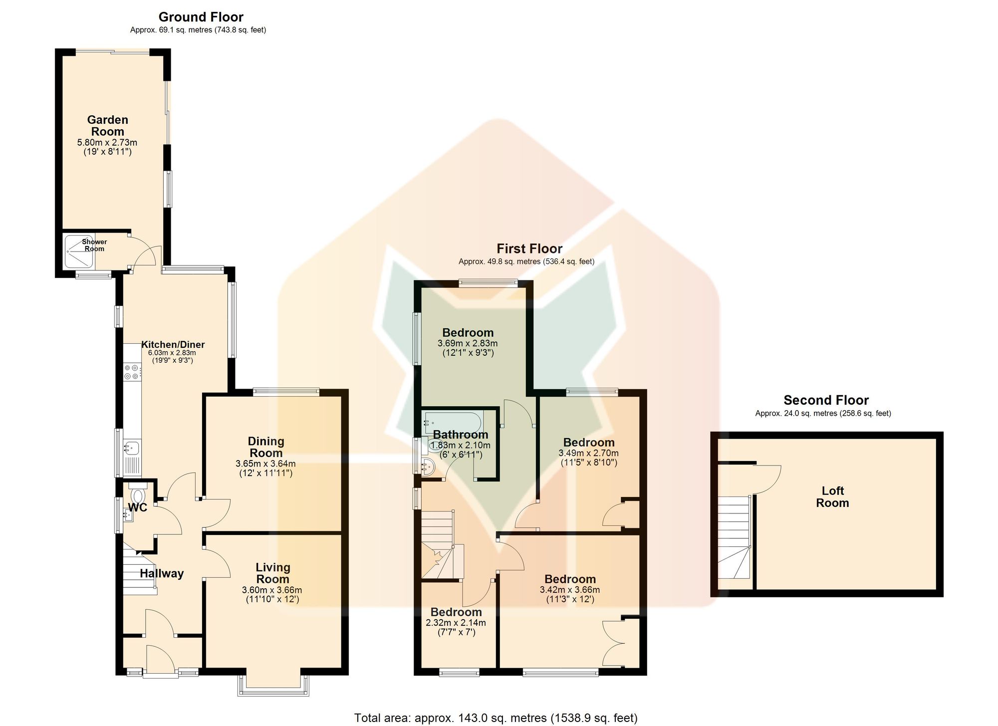 Inside, the accommodation briefly comprises an entrance hall, a bright and welcoming lounge, a separate dining room, a modern open-plan dining kitchen, a versatile garden room, and a ground-floor shower room. Upstairs, you’ll find four well-proportioned bedrooms served by a family bathroom. Additionally, the first floor benefits from a second set of stairs leading to a spacious loft room, offering excellent potential for further development to suit your needs.