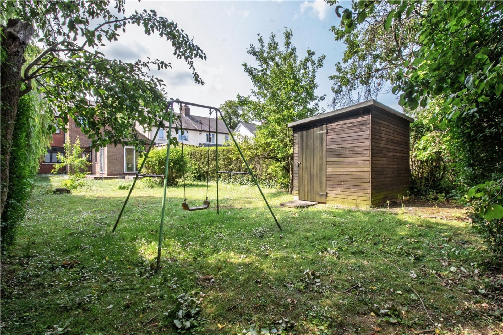 Externally, the home is set behind a fenced boundary with a neatly lawned front garden and a driveway providing ample off-road parking. To the rear, the enclosed garden is impressively generous, featuring a private lawned area perfect for outdoor living and family activities.